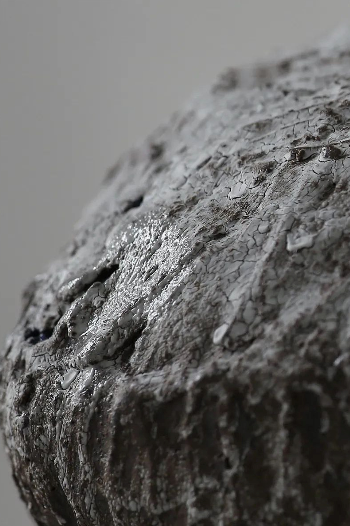 Поверхность снаружи матовая, шершавая, фрагментарно полуглянцевая. Внутри - гладкий глянец. Форма - горизонтальный эллипс на устойчивом основании. Функциональная ваза для живых цветов.