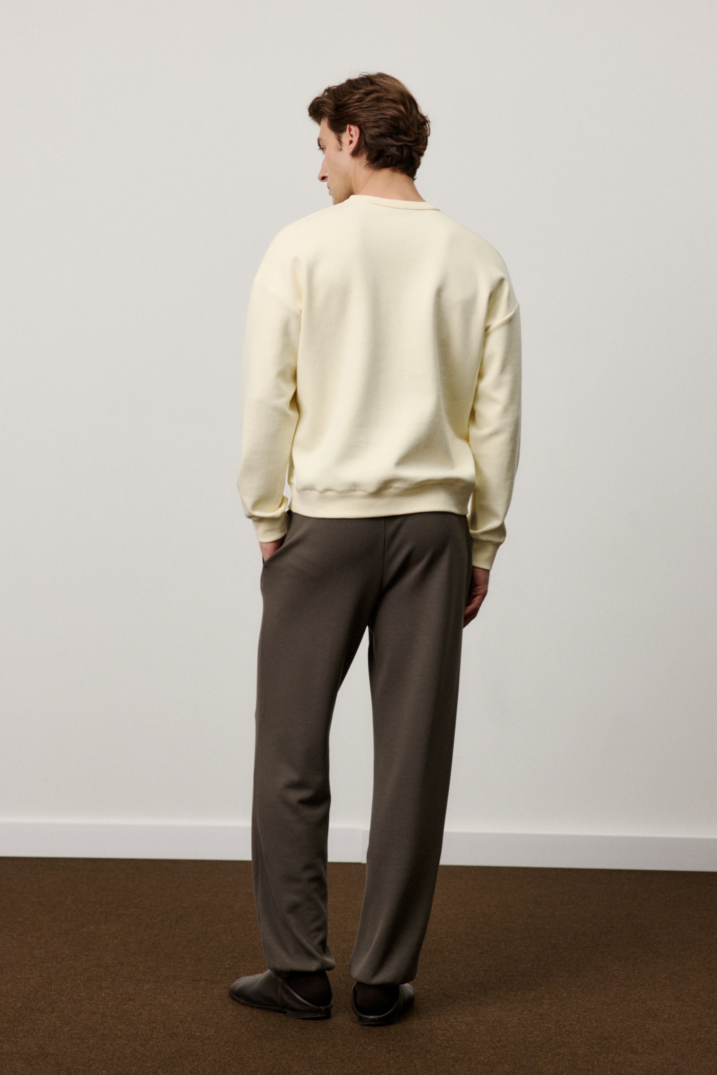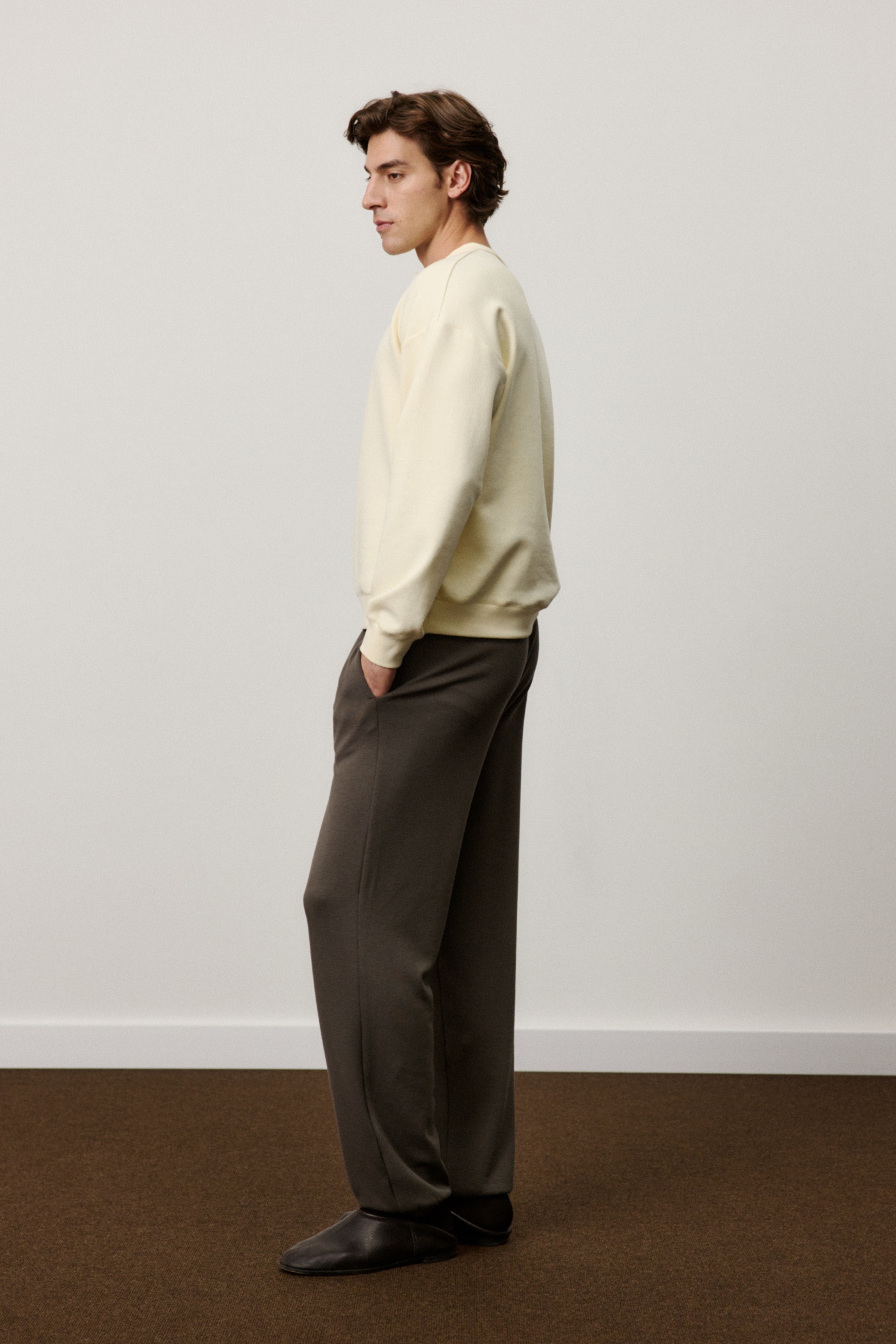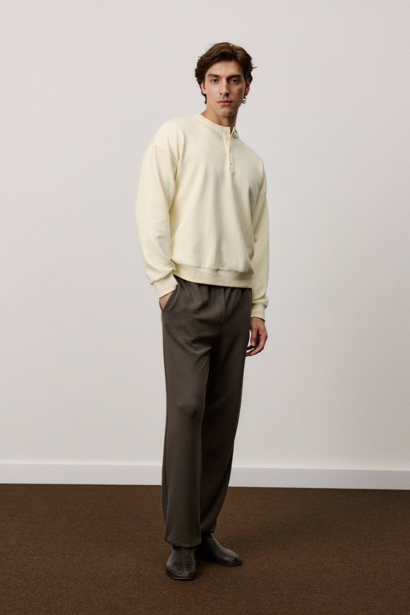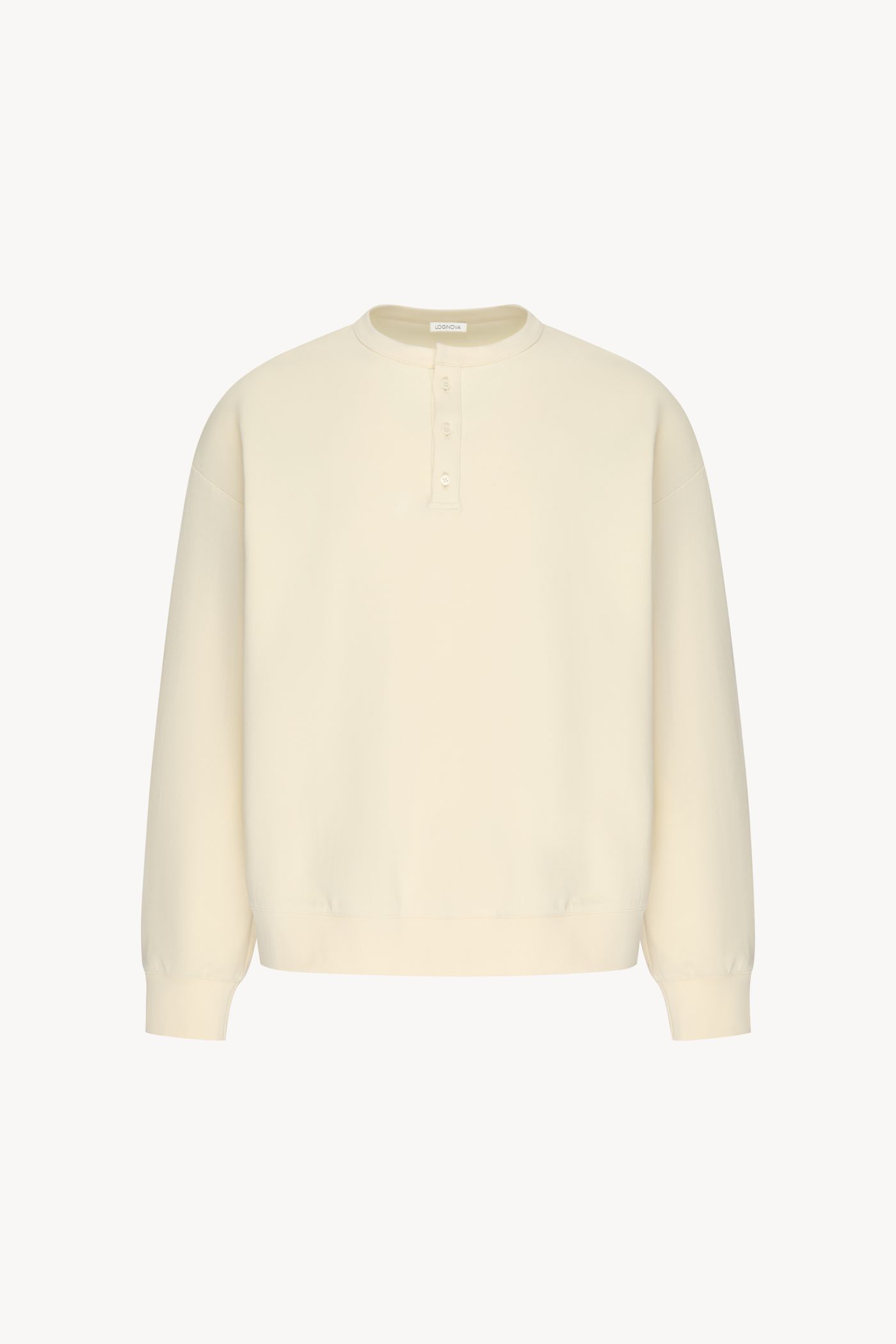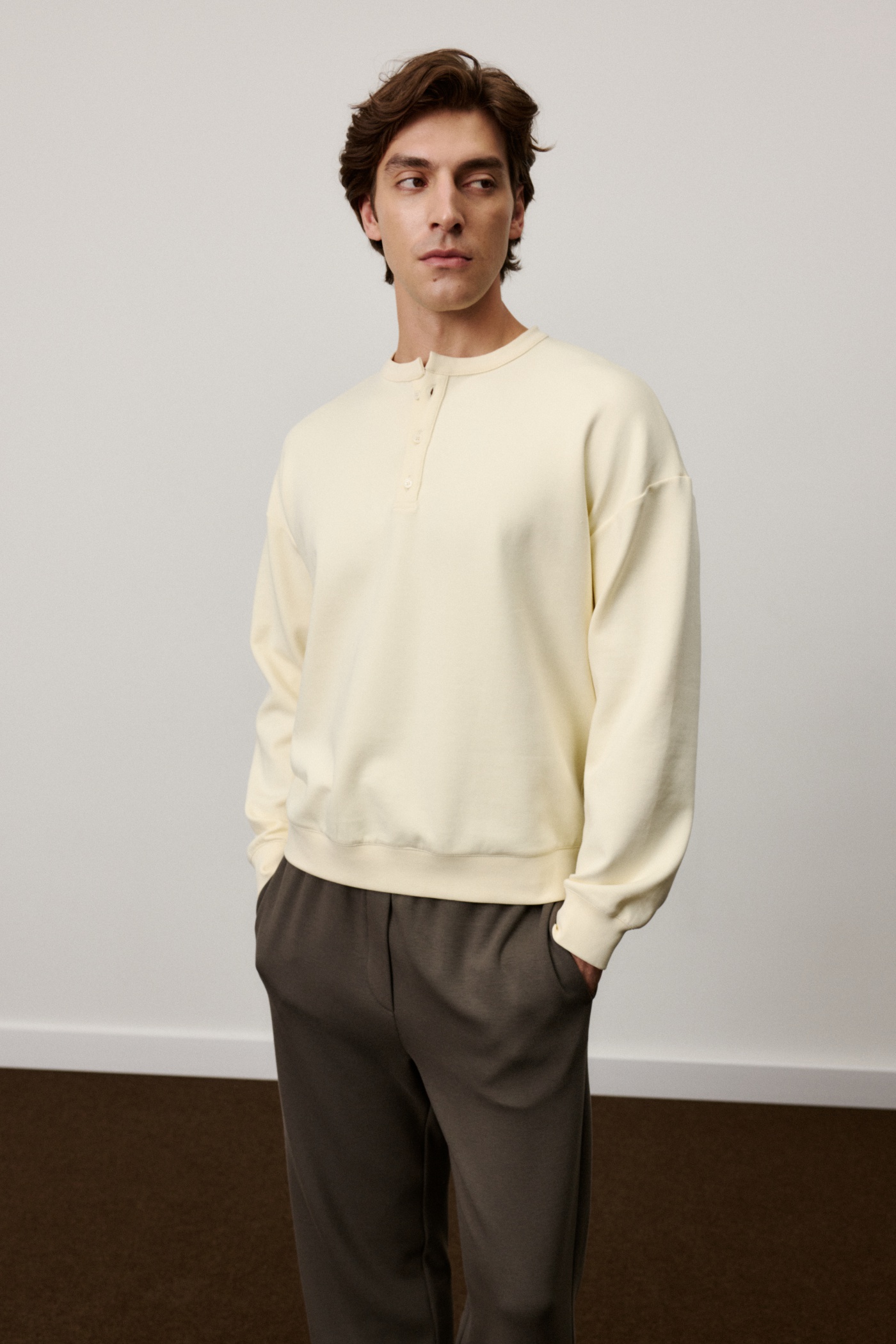 Классический свитшот свободного кроя с круглым горлом на пуговицах из плотного хлопкового трикотажа.