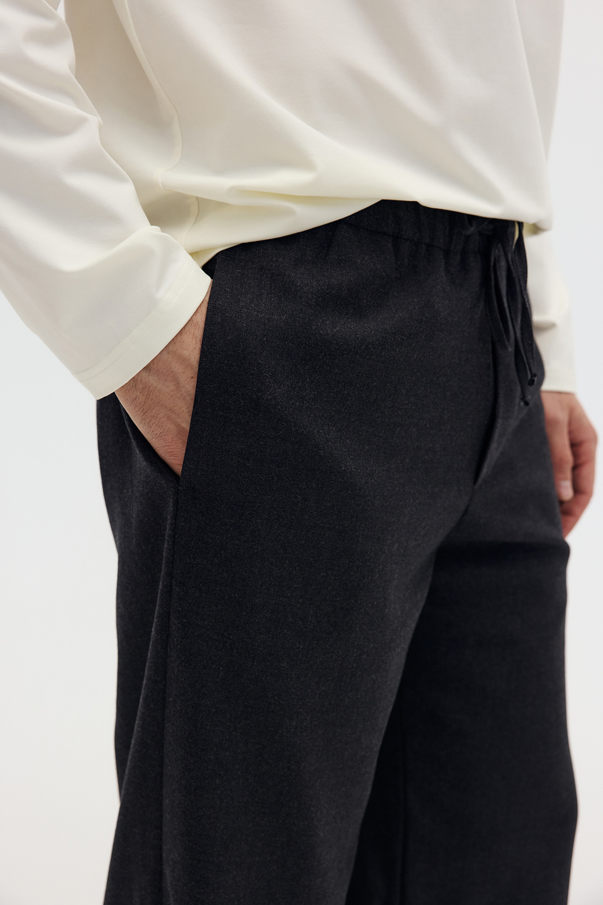 Мужские брюки на кулиске из шерсти с боковыми карманами.