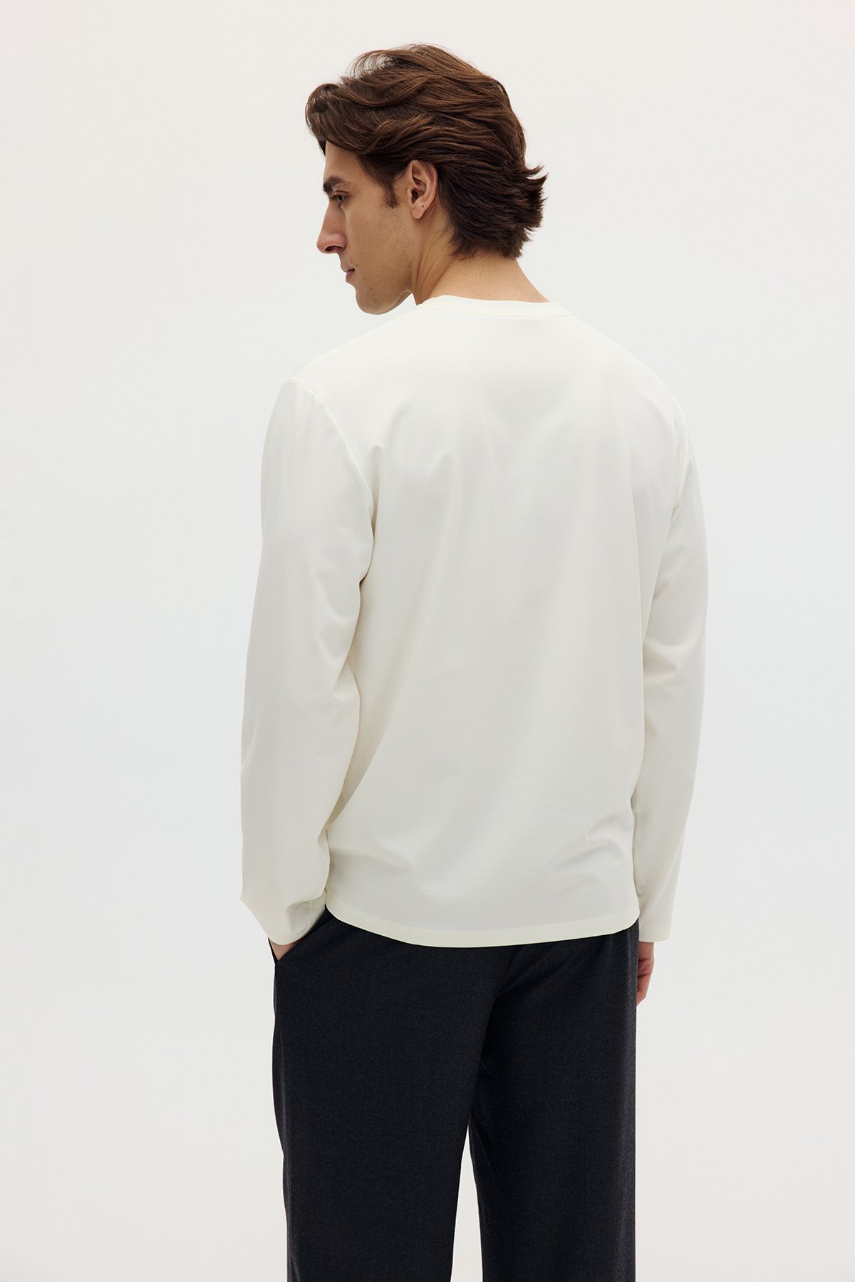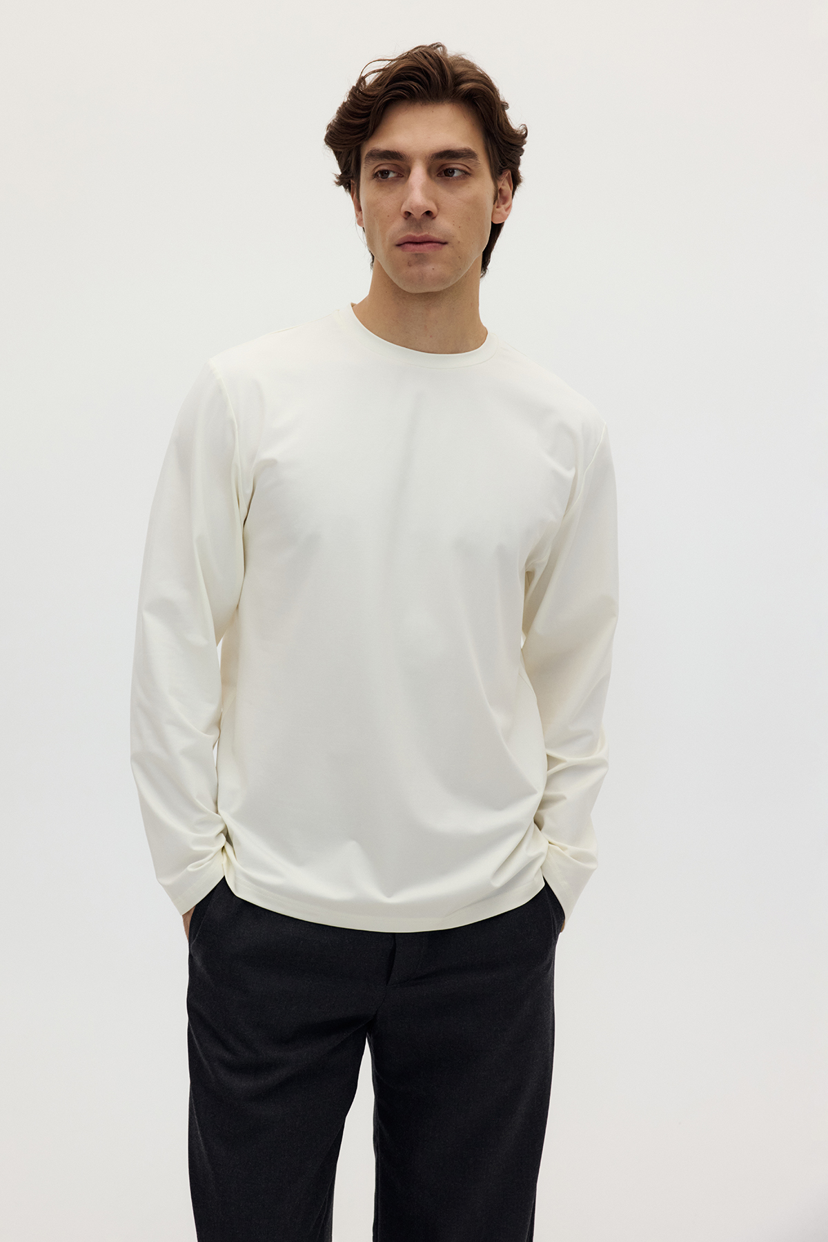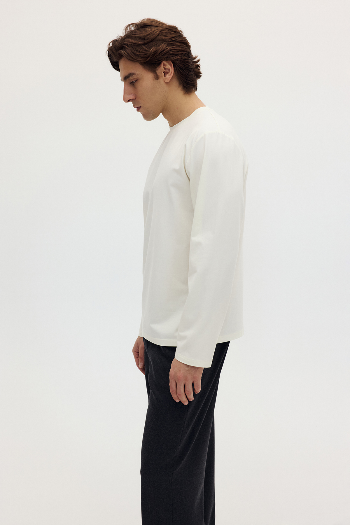 Лонгслив свободного кроя из премиального трикотажа.