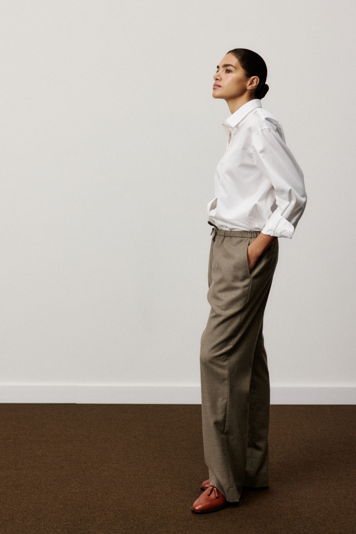 Брюки на кулиске из шерсти с карманами в боковых швах.