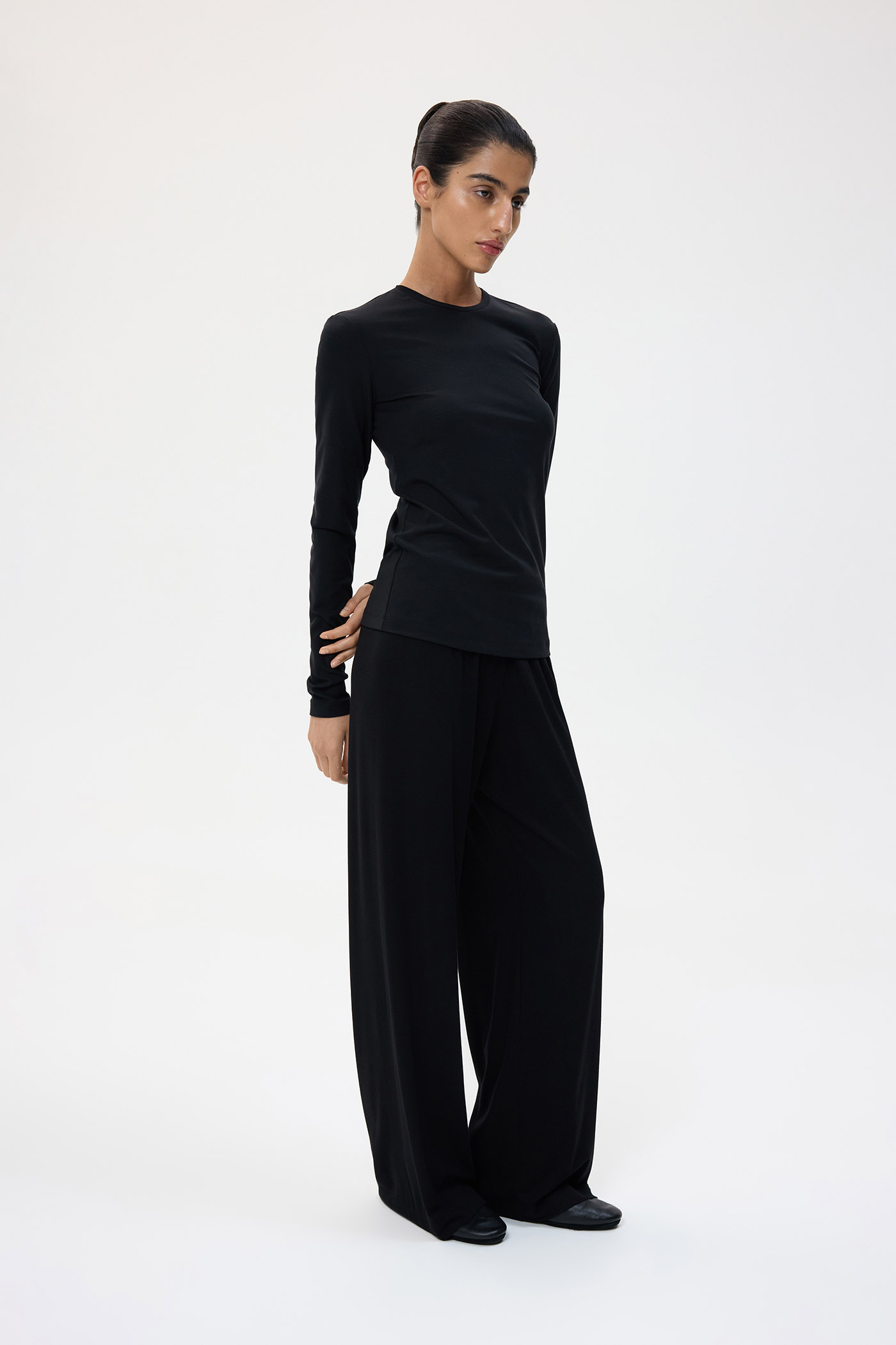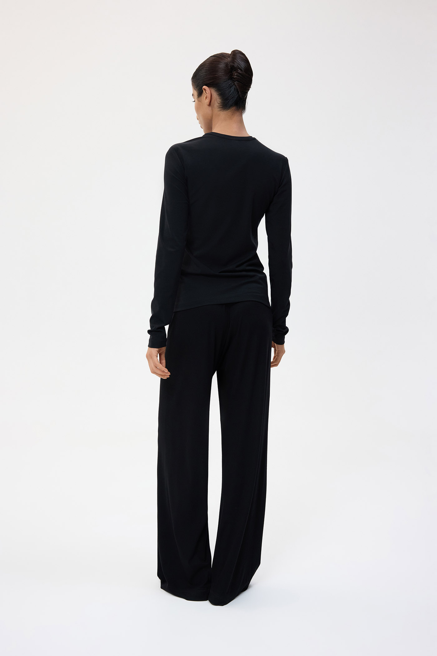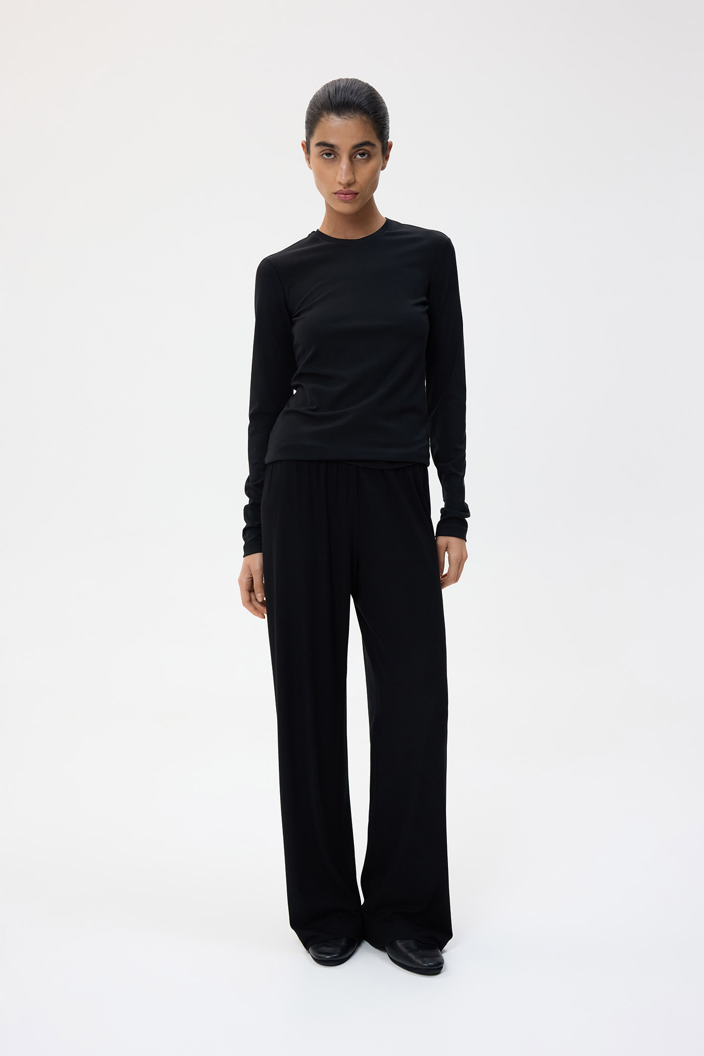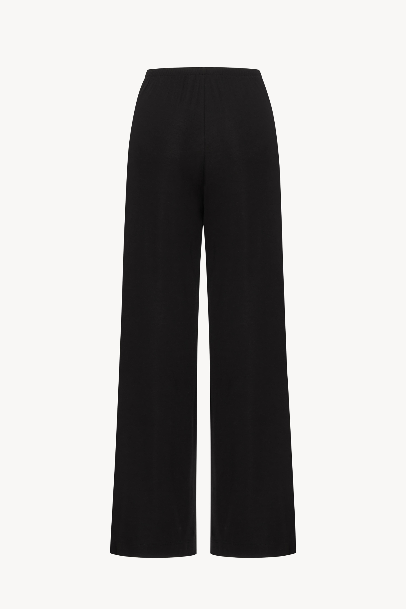Брюки свободного кроя с эластичной резинкой на поясе из трикотажного полотна.