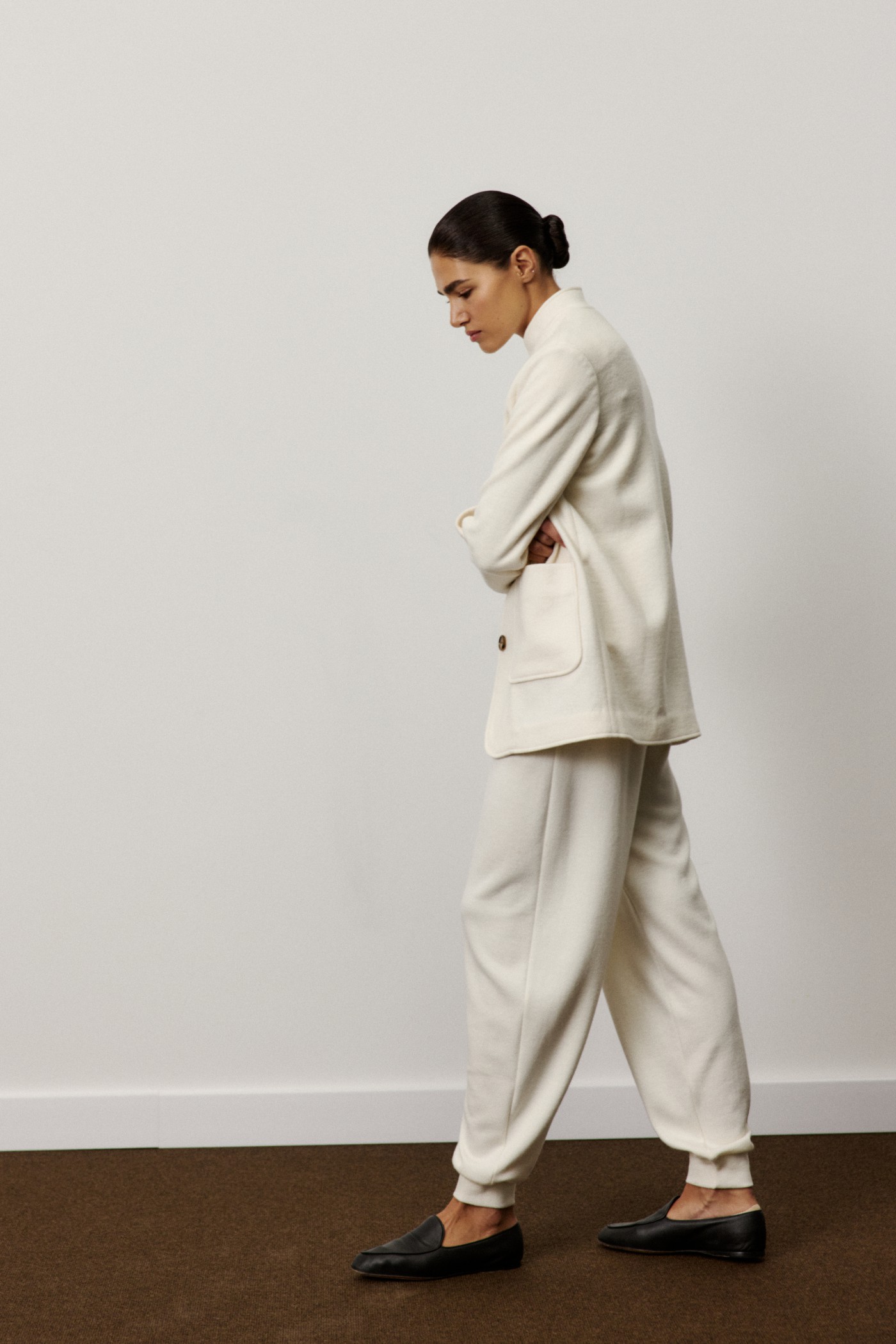 Широкие брюки на манжетах из трикотажа с добавлением шерсти