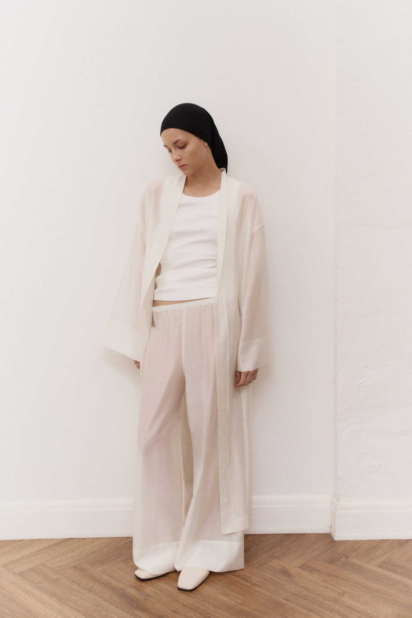 Брюки на резинке из шелковой органзы.