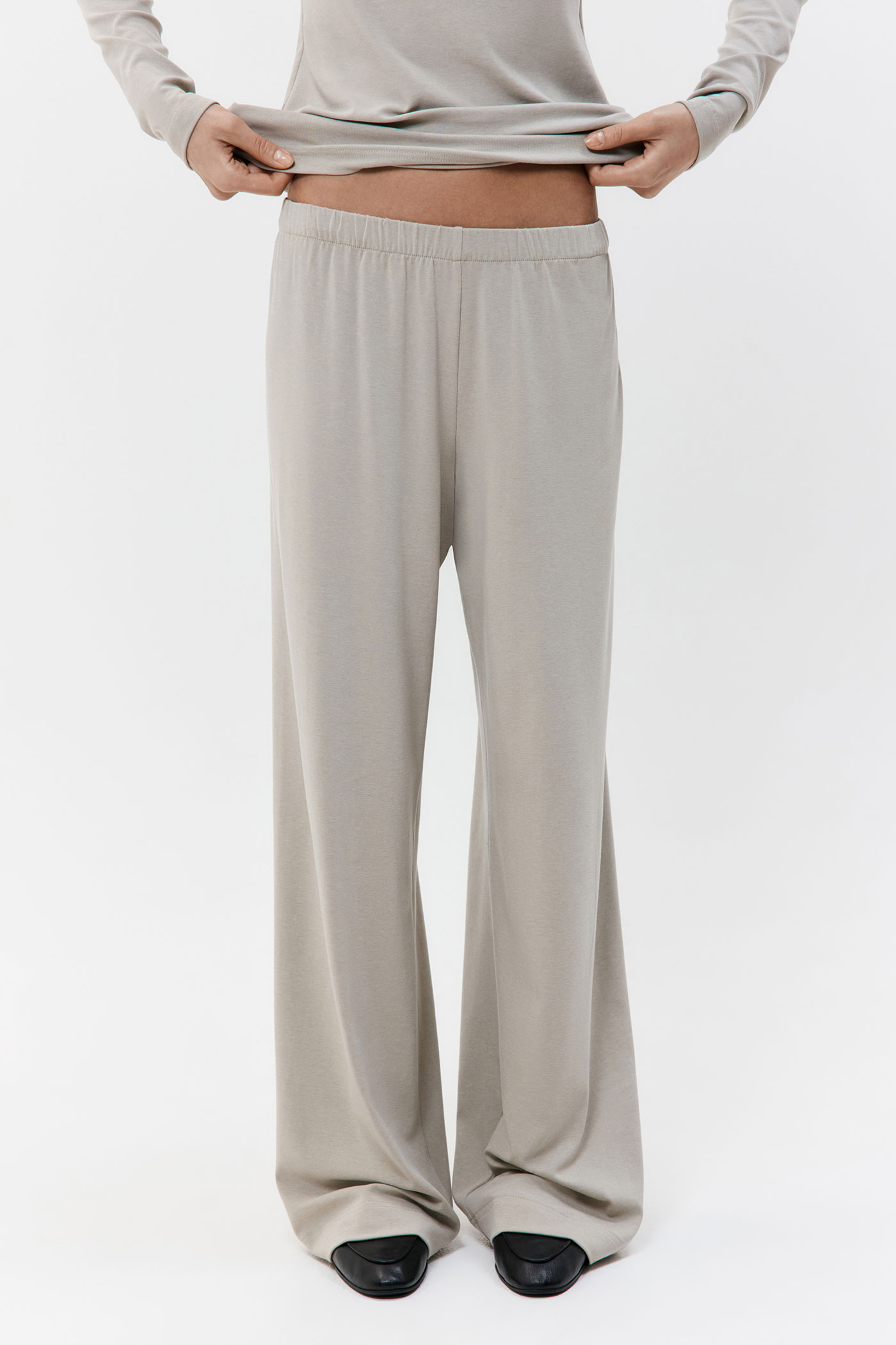 Брюки из нежного трикотажа свободной посадки.