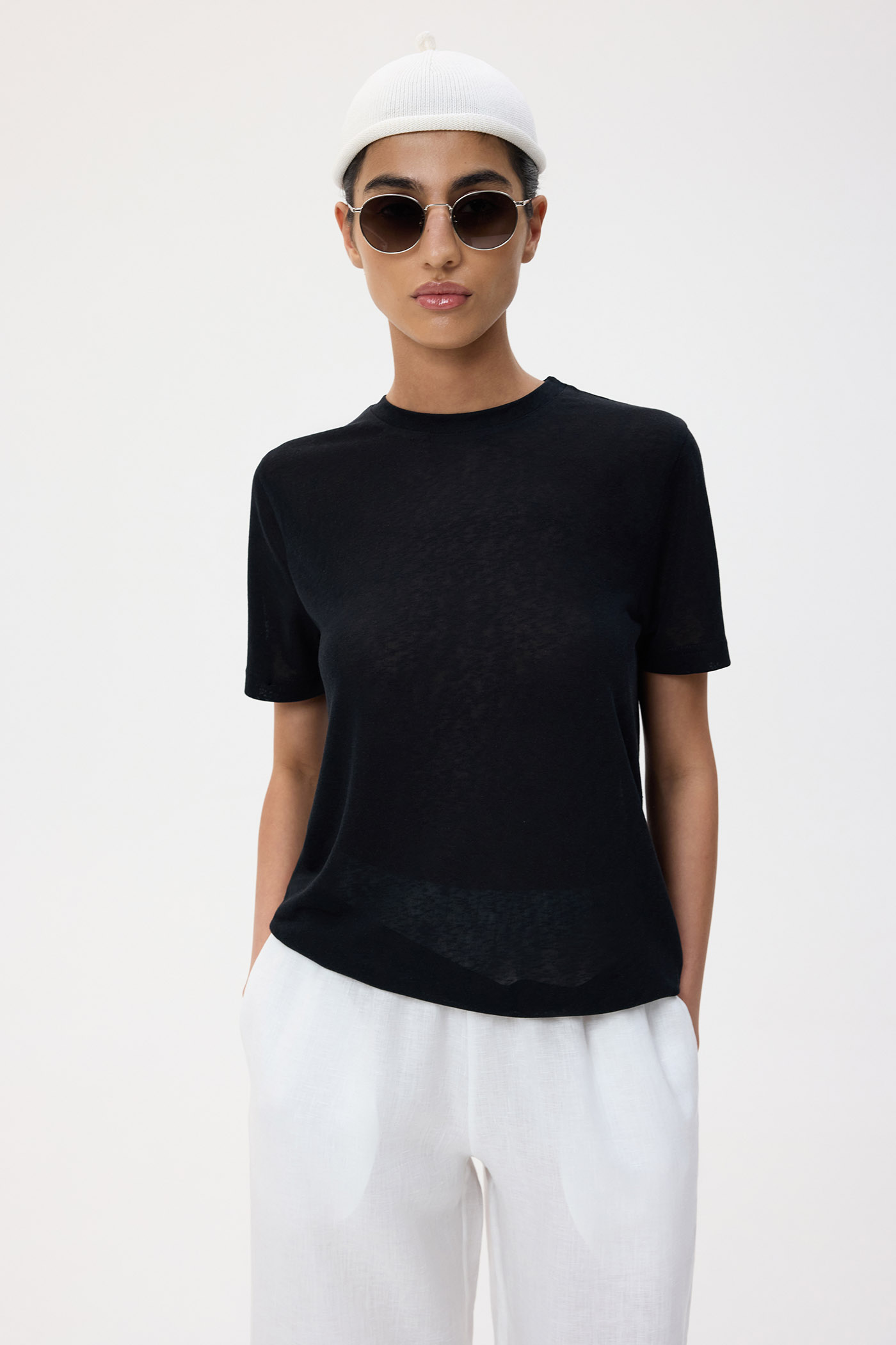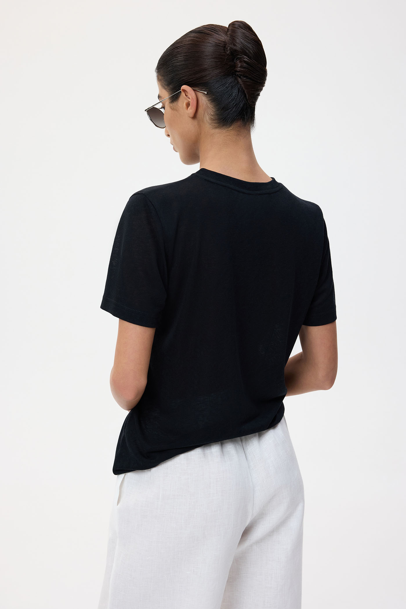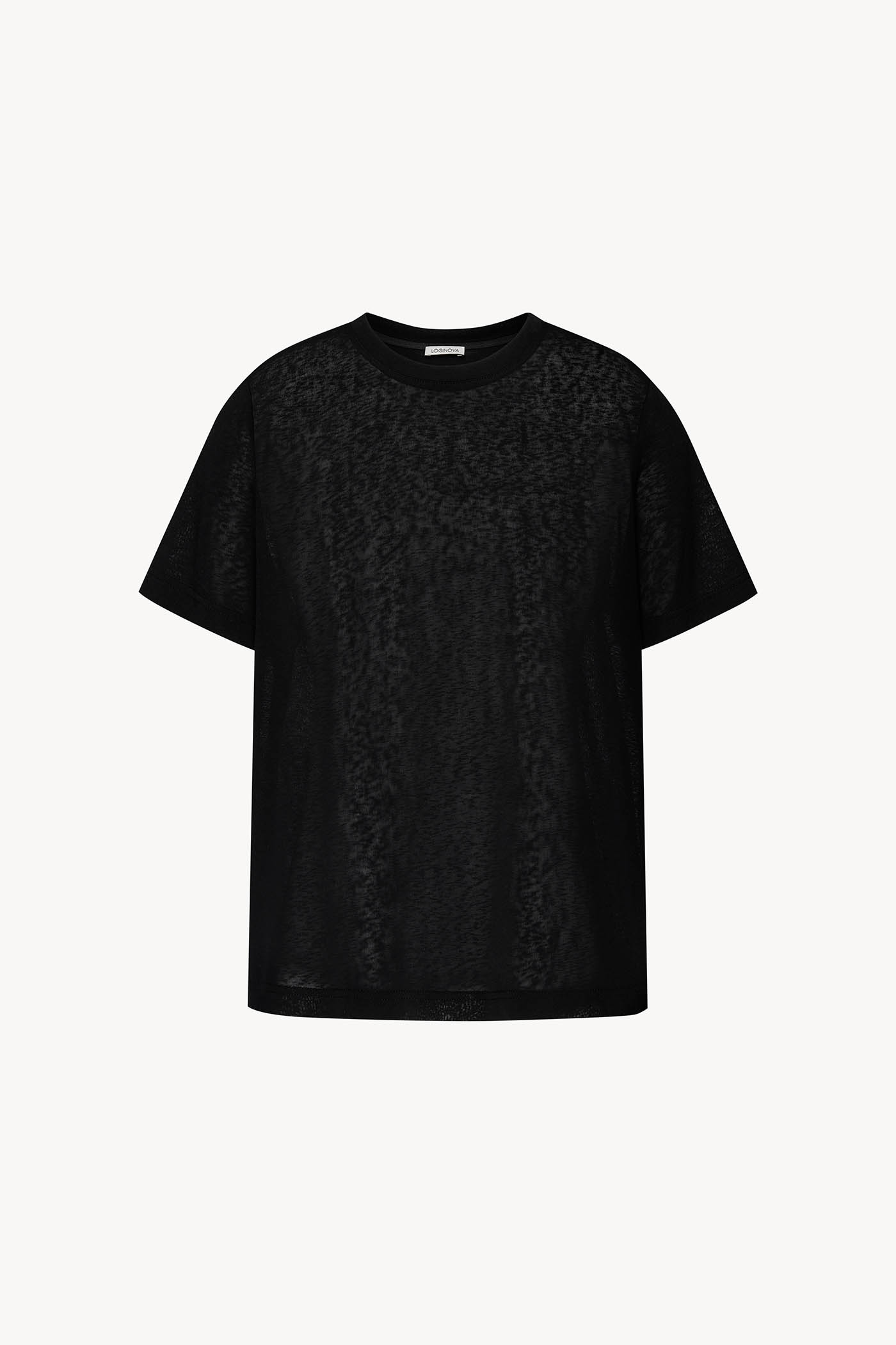 Футболка прямого кроя из прозрачного и шелковистого трикотажа.