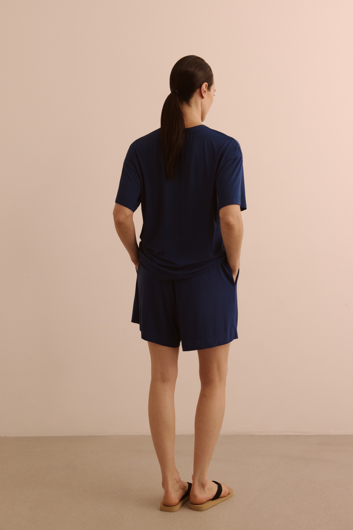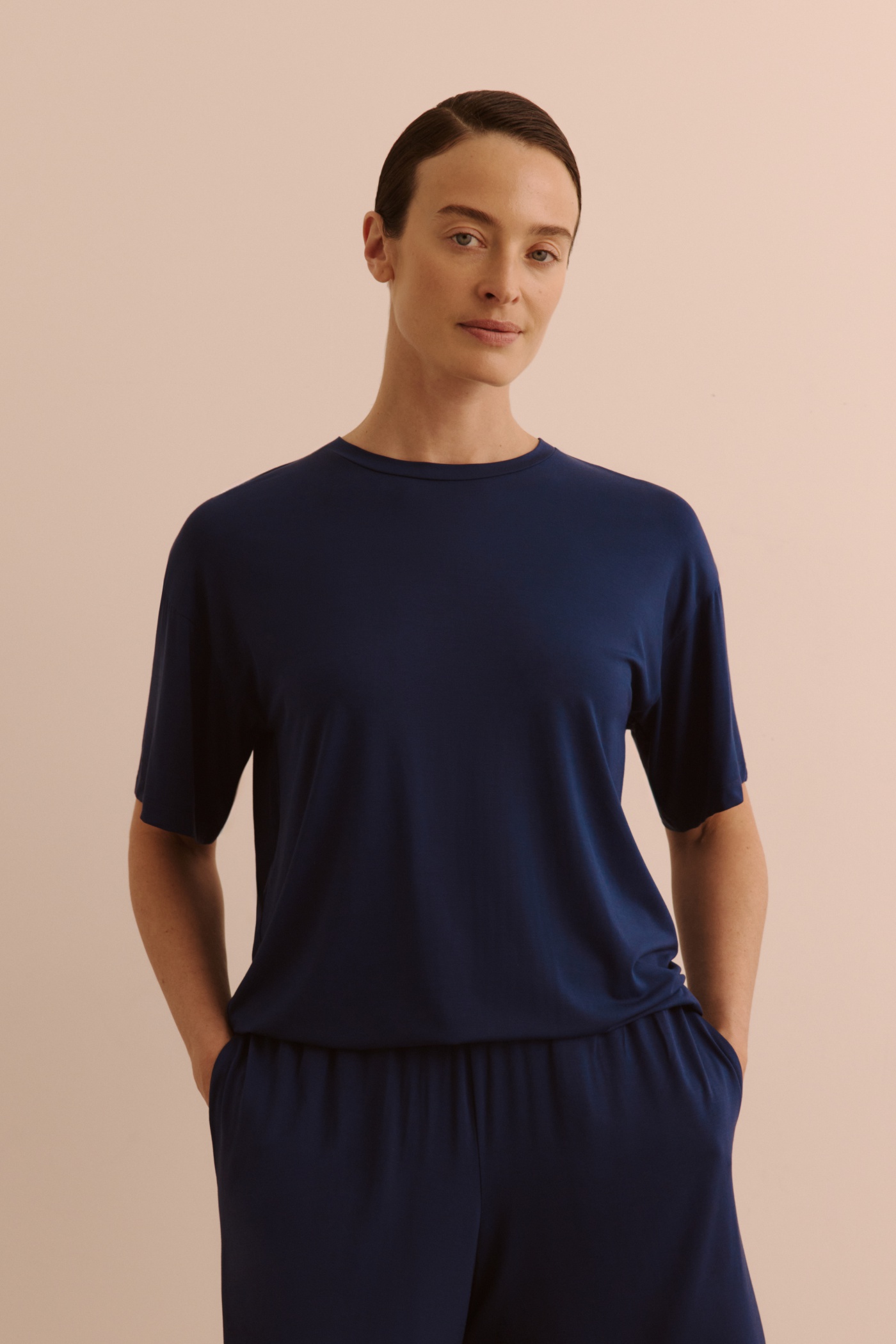 Футболка свободного кроя из нежного модала со швом по центру спины.