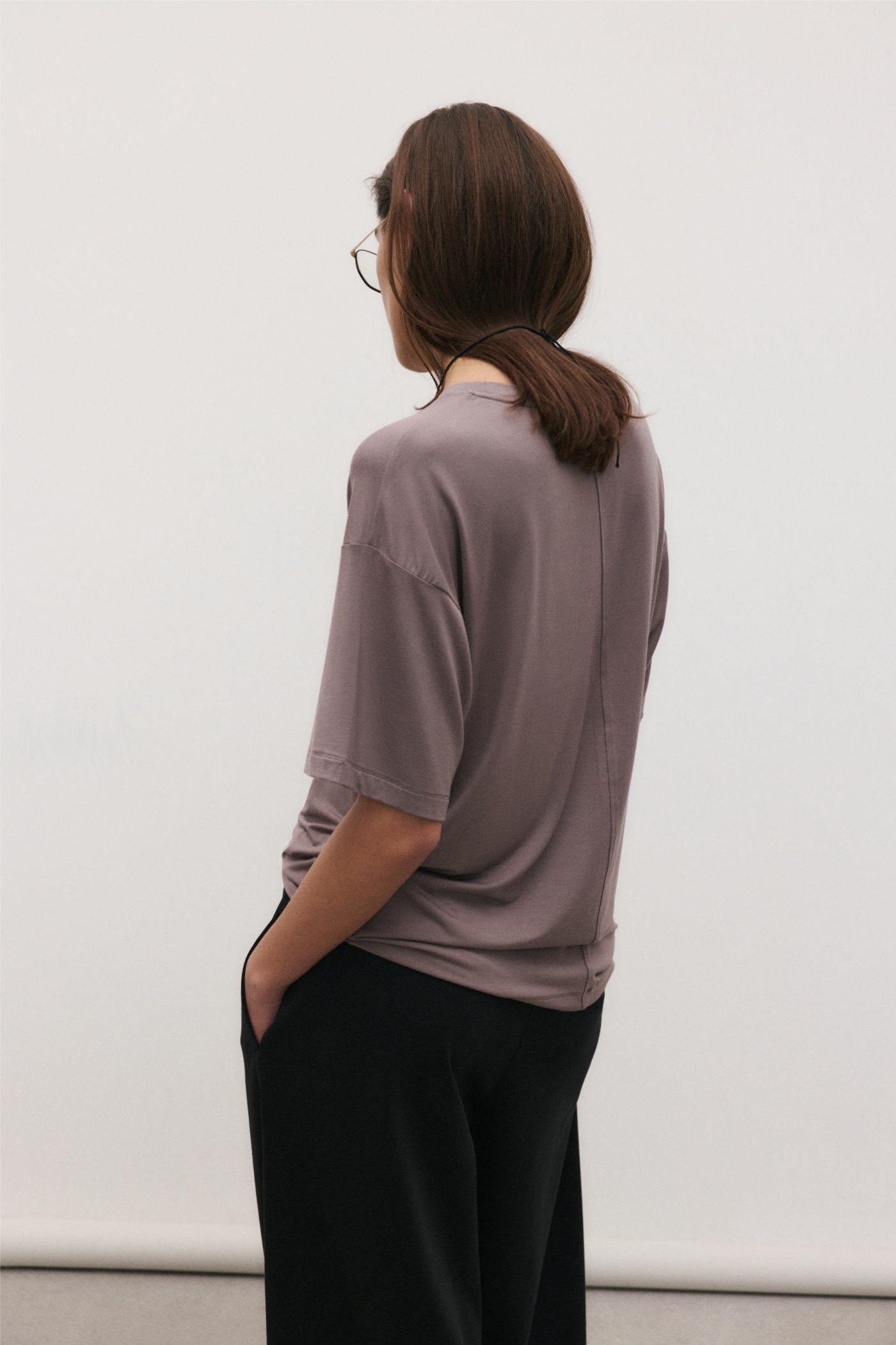 Футболка свободного кроя из нежного модала со швом по центру спины.