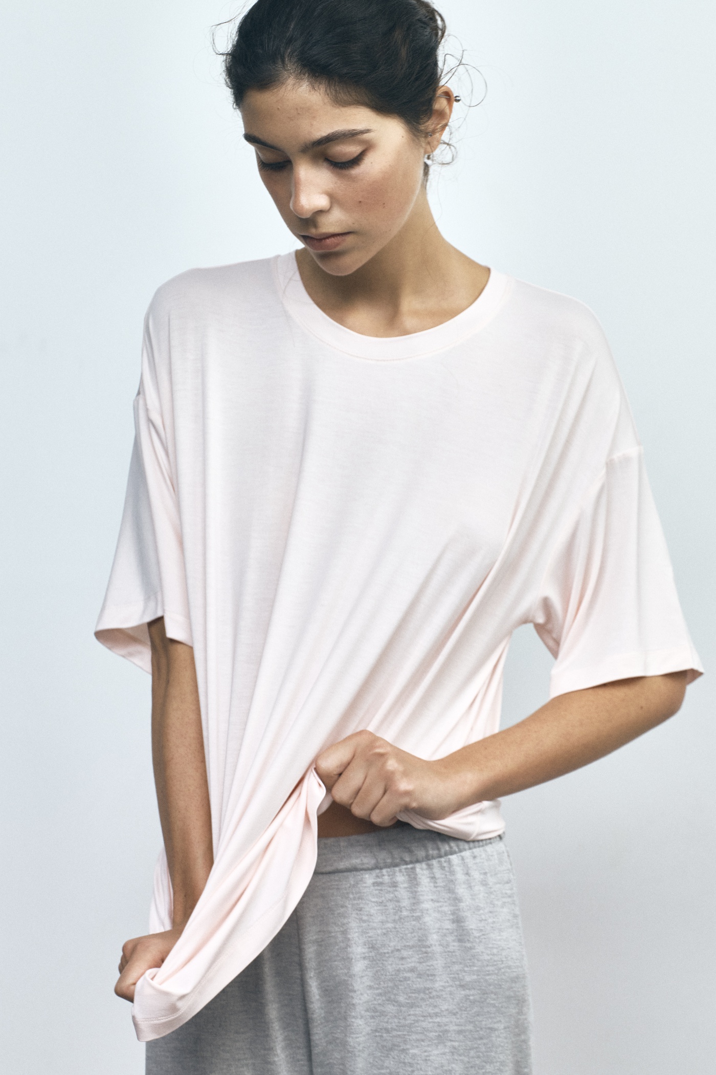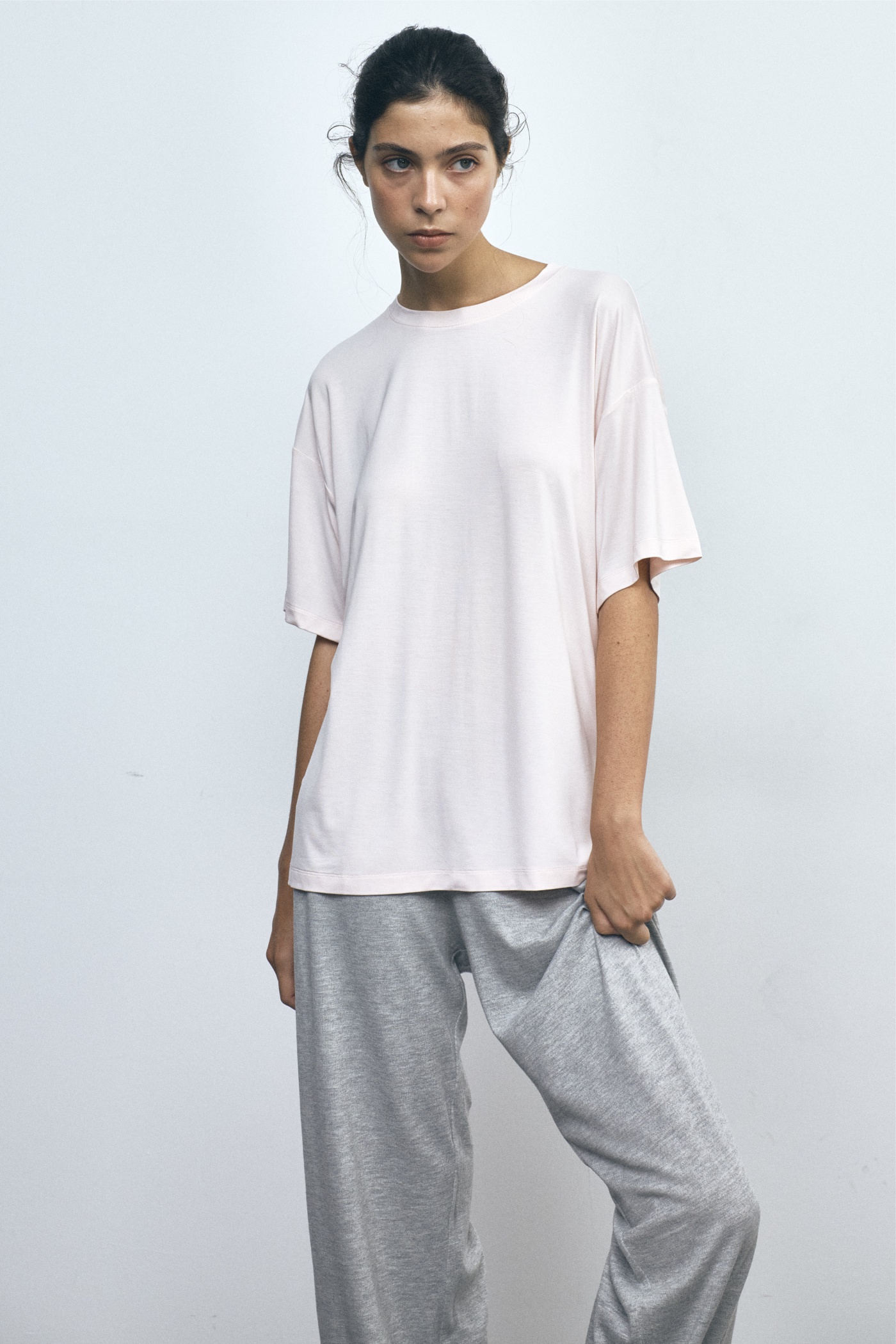 Футболка свободного кроя из нежного модала со швом по центру спины.