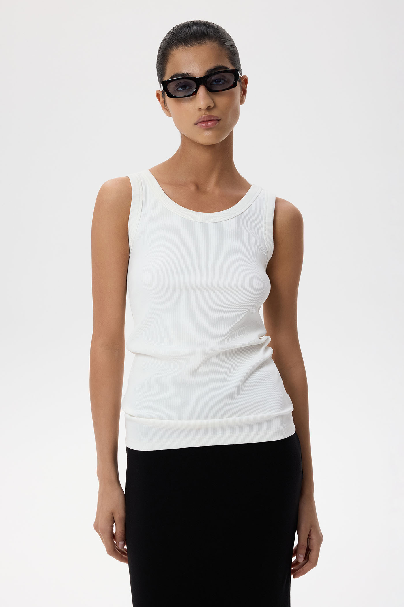 Базовая майка из хлопкового трикотажа в рубчик.