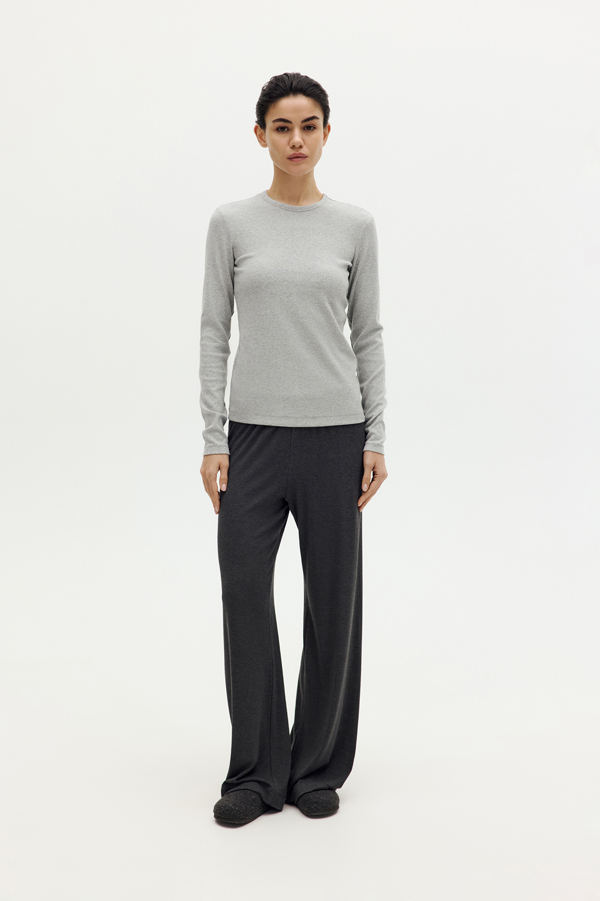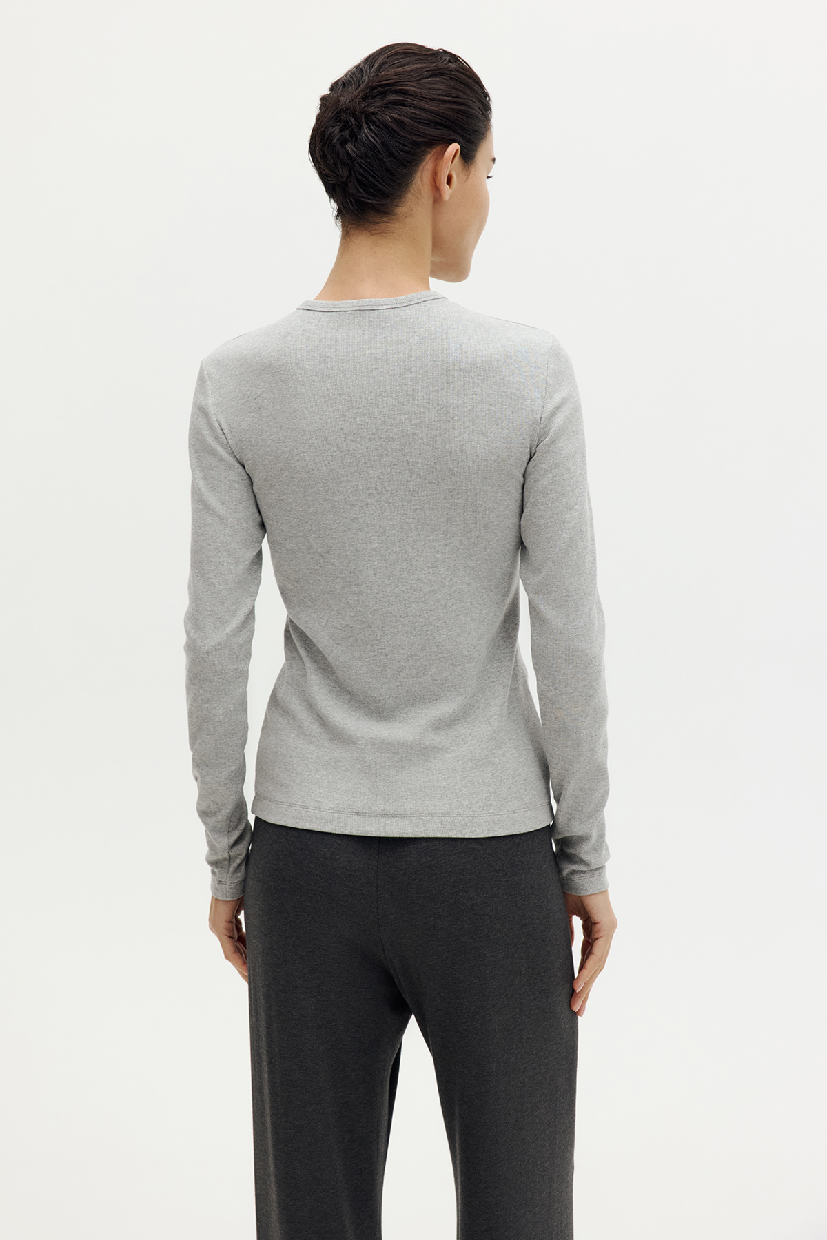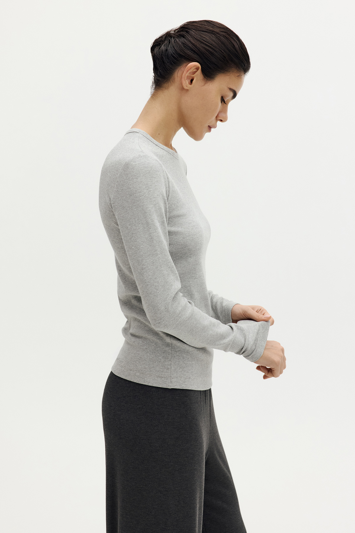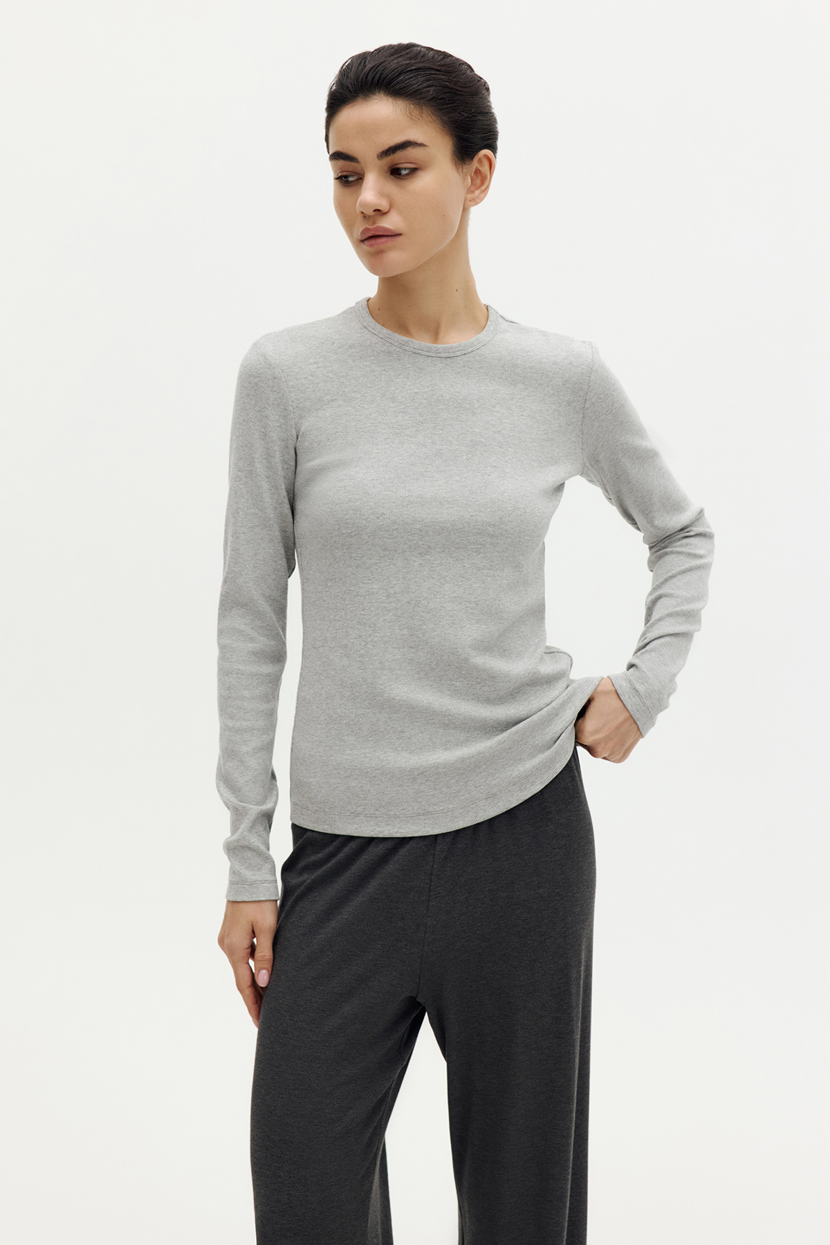 Базовый лонгслив в рубчик. Ткань отлично держит форму и не вытягивается.