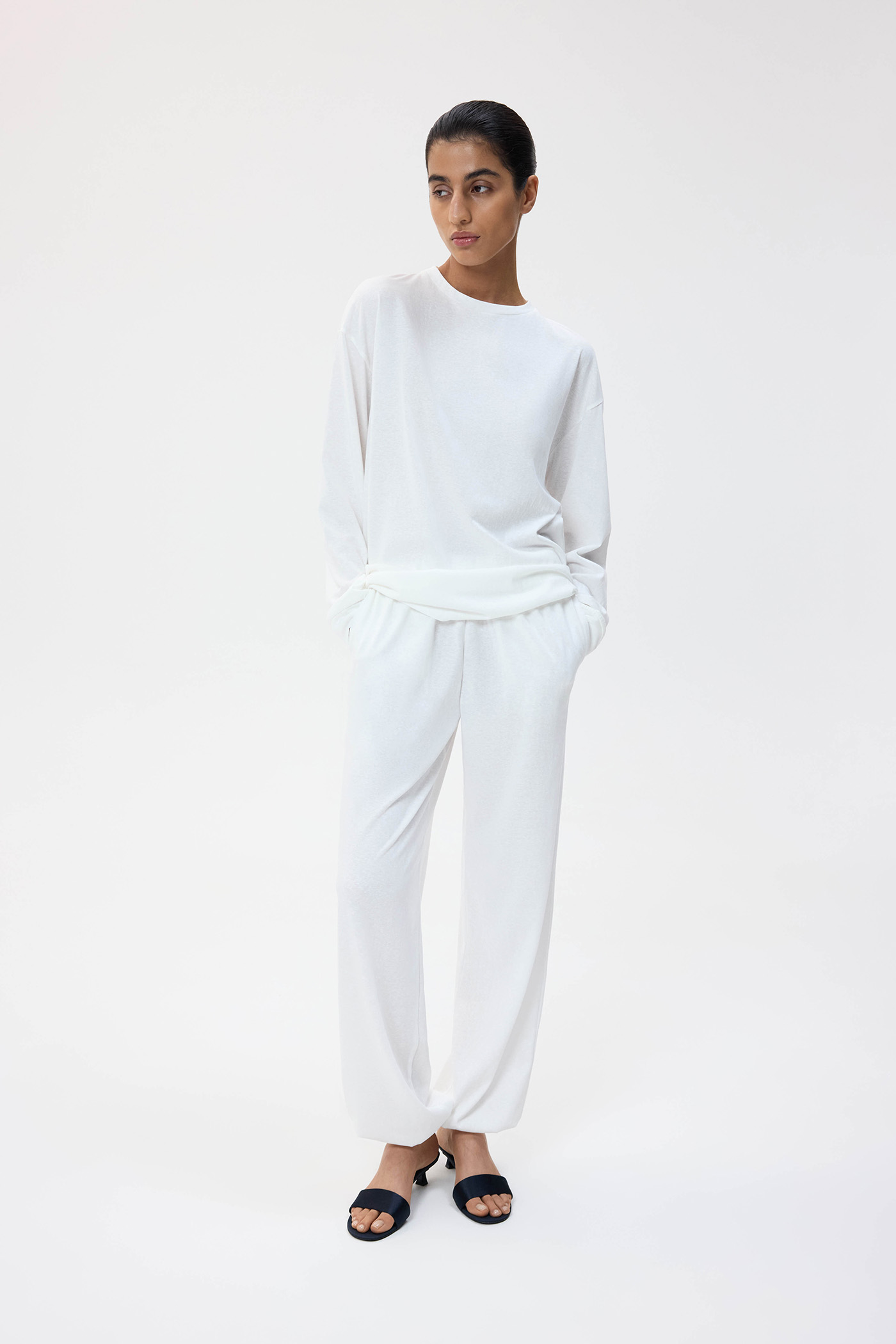 Лонгслив из хлопкового трикотажа свободного кроя на манжетах.