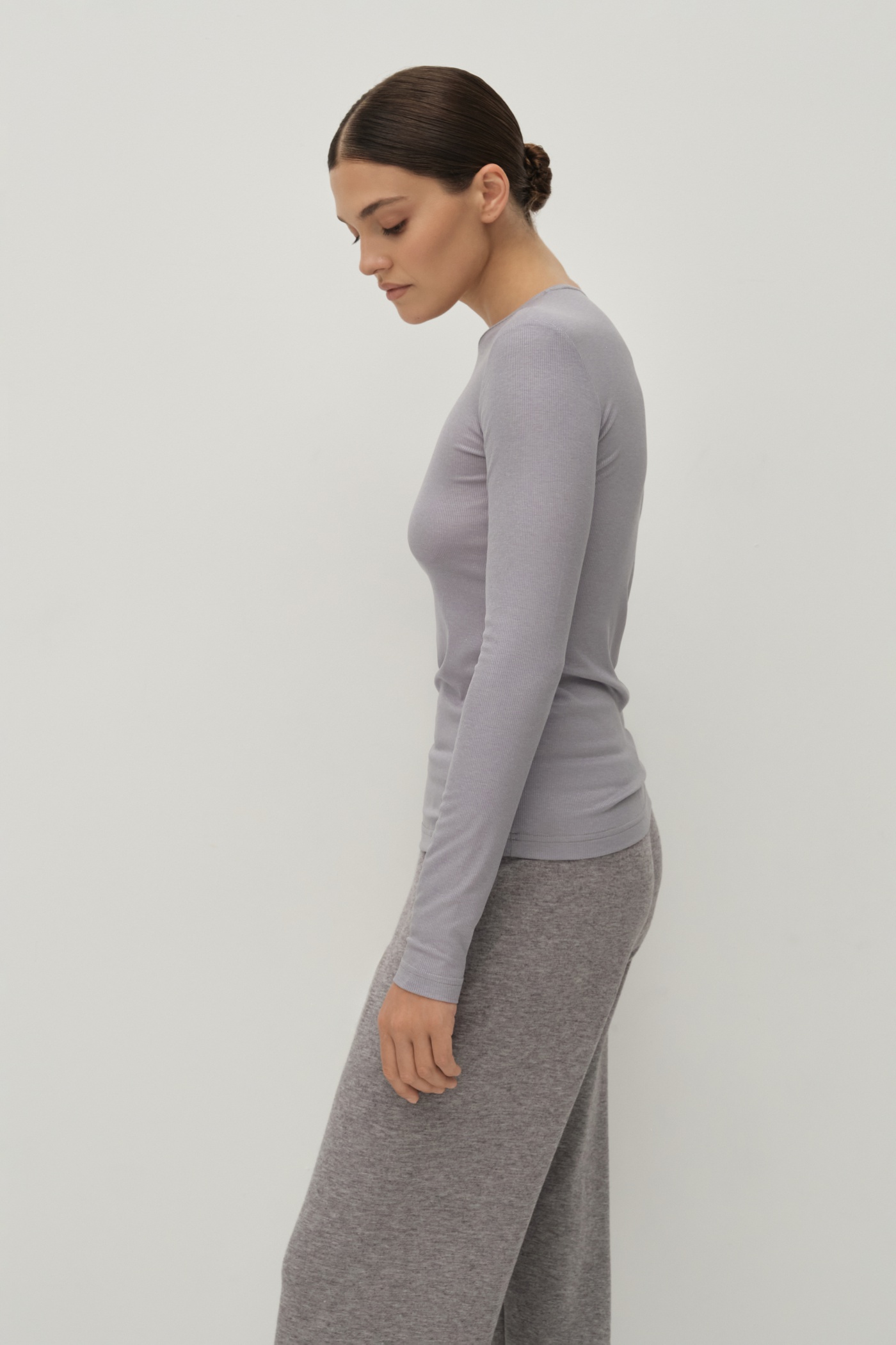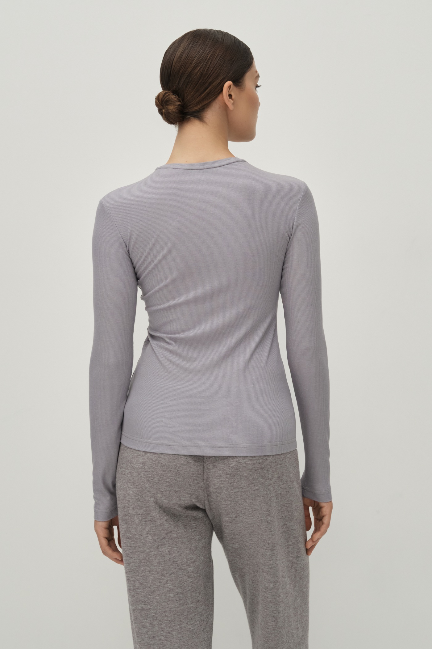 Лонгслив из рибаны приталенного силуэта.