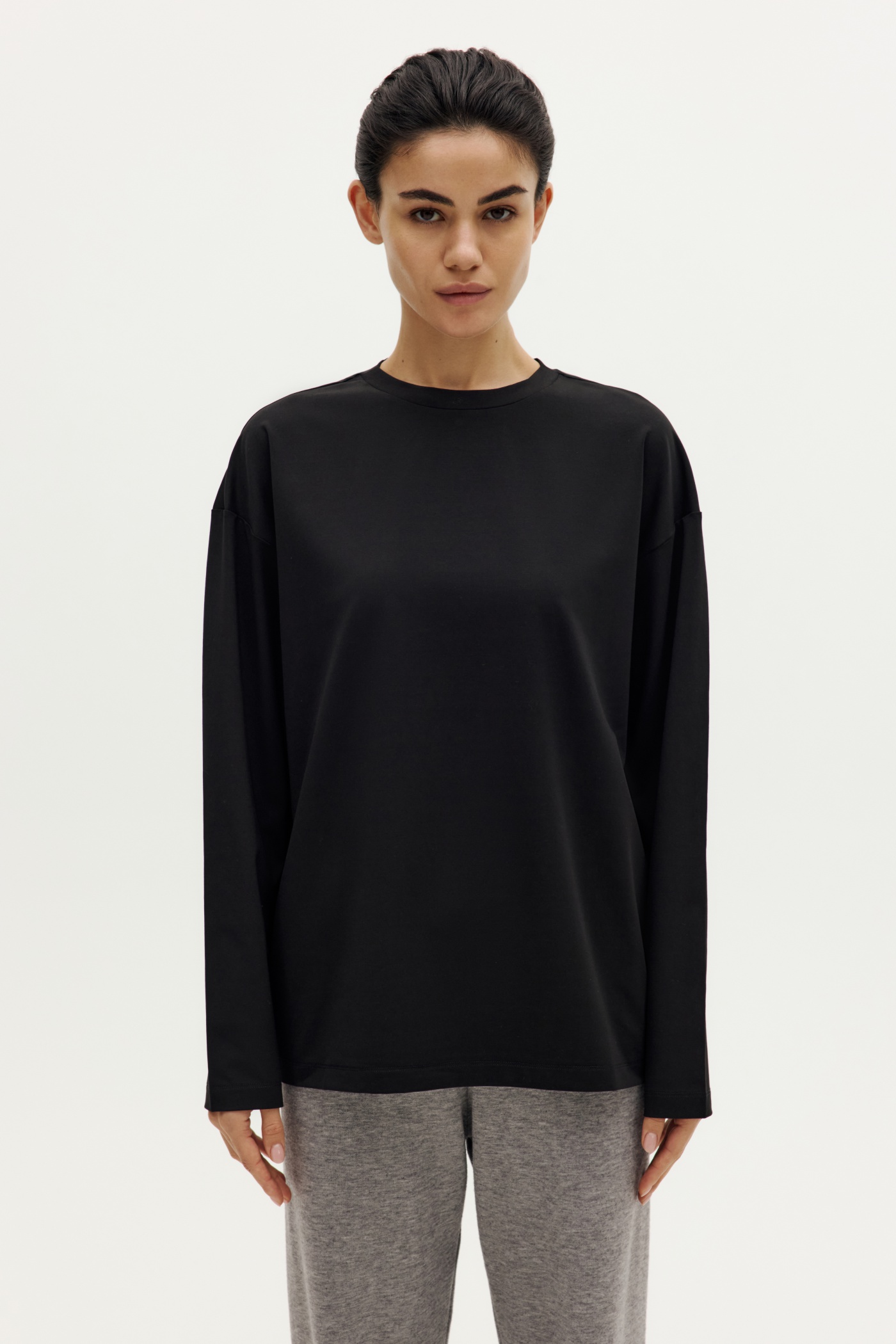 Лонгслив из премиального модала, отлично держит форму. Мягкая дышащая ткань, спущенная линия плеча, незаменим для повседневных образов.