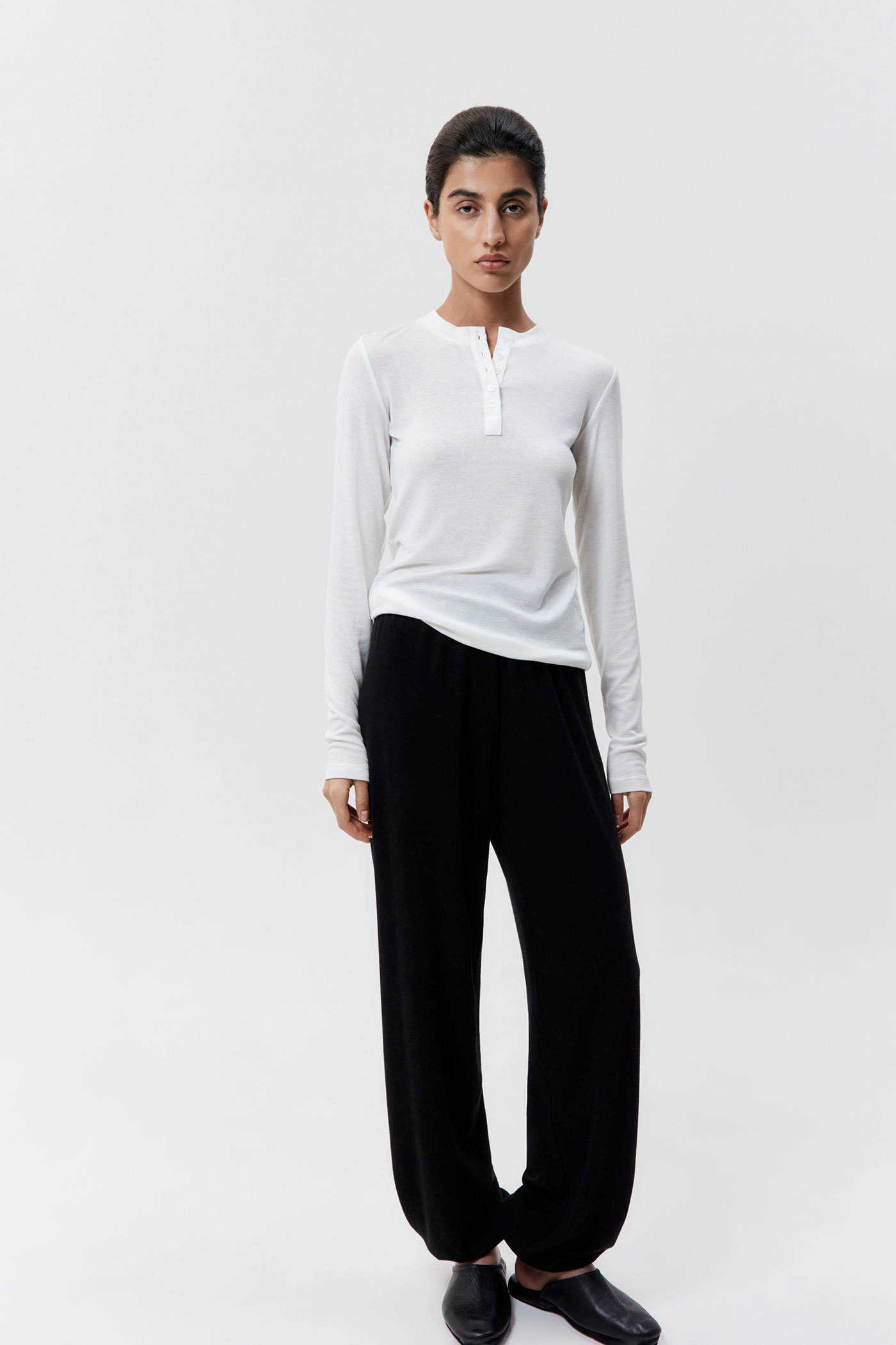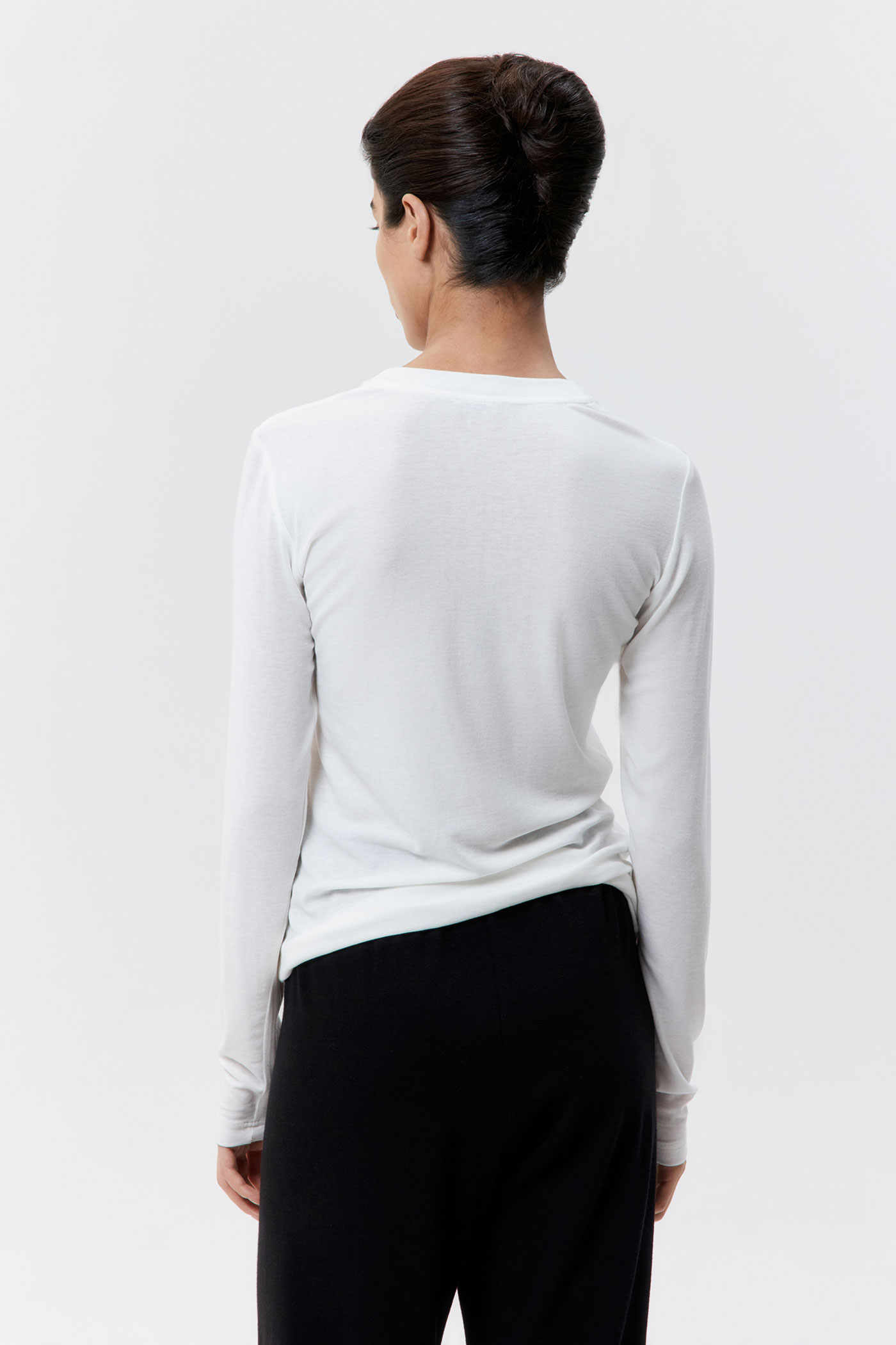 Лонгслив из нежного полупрозрачного трикотажа с пуговицами.