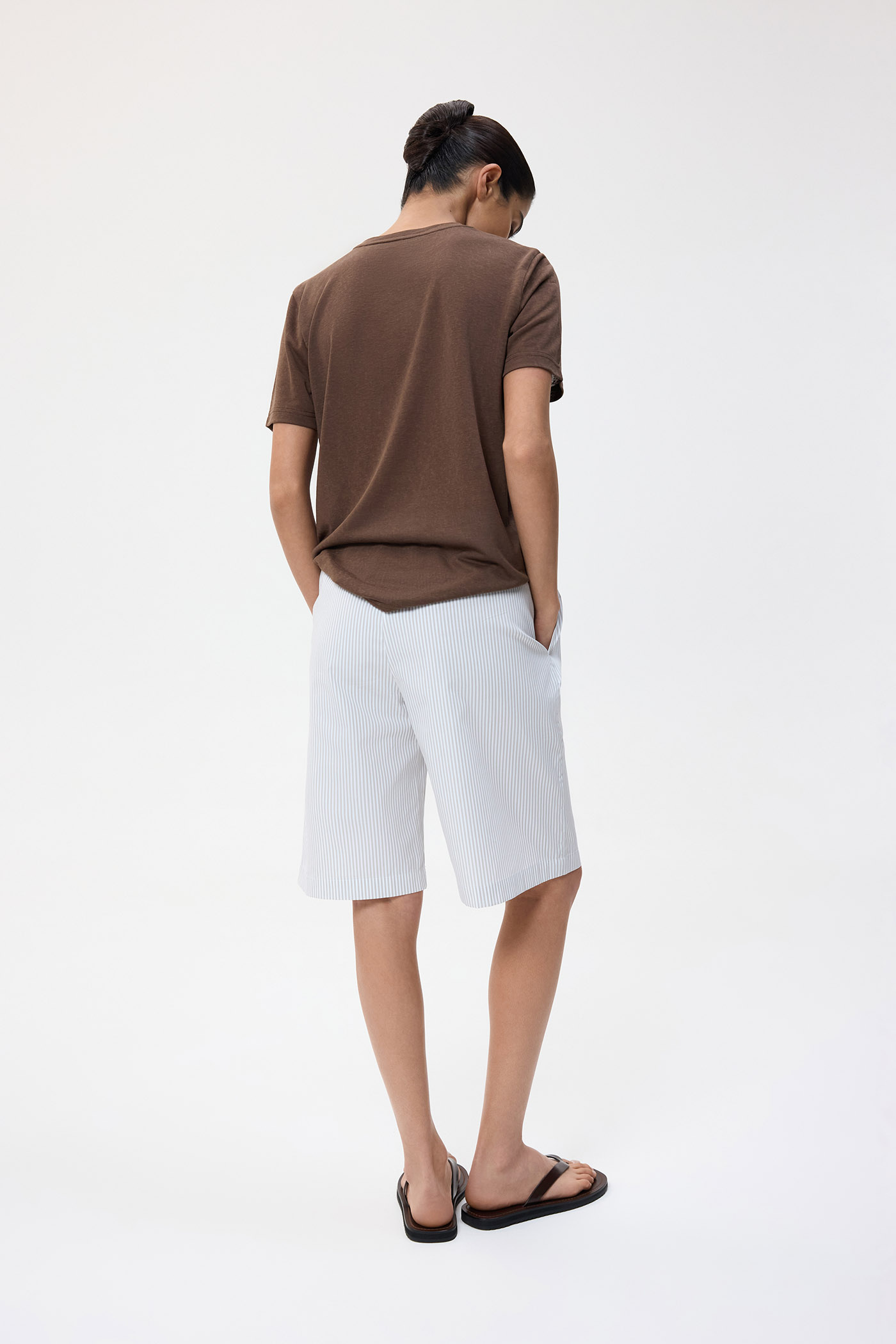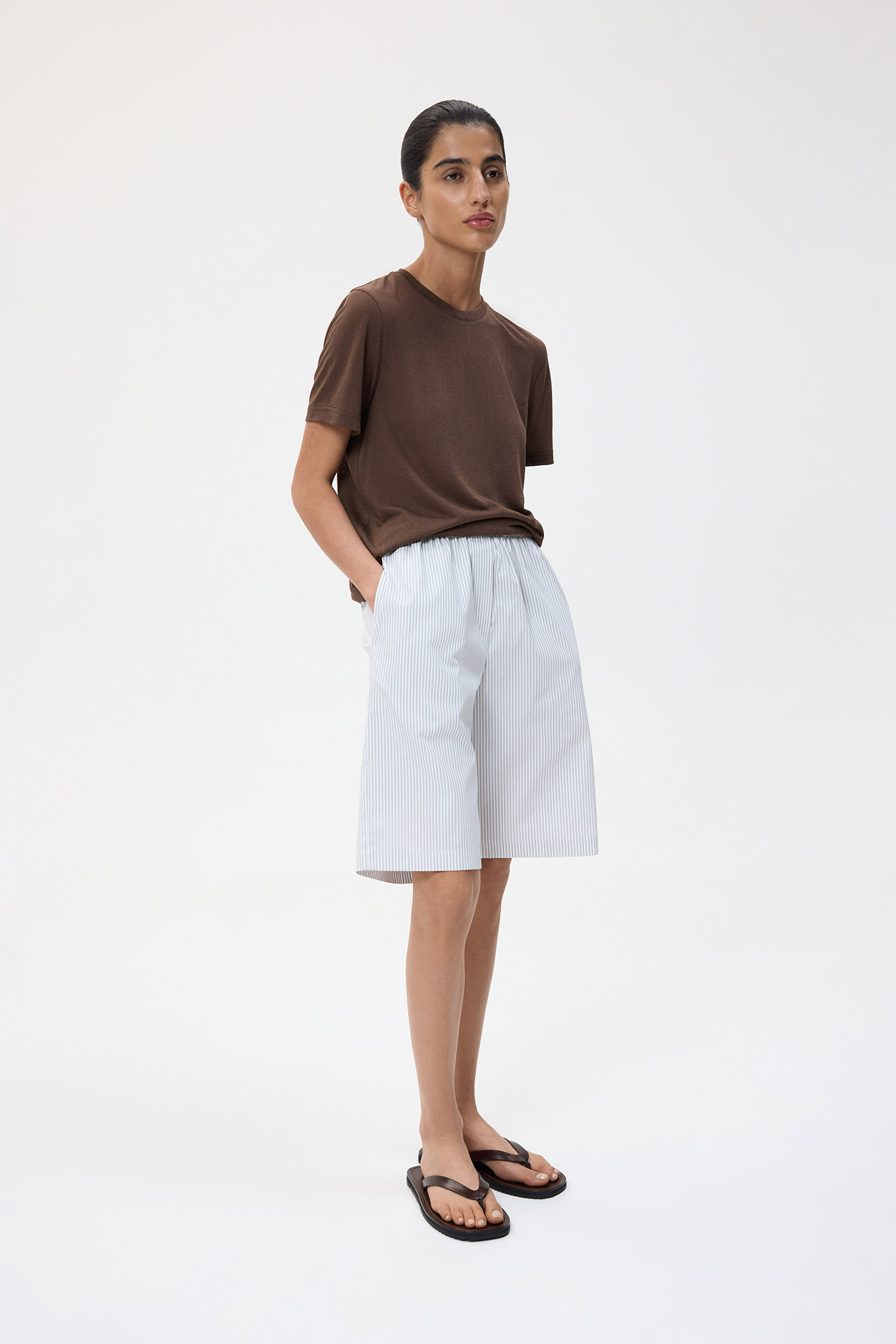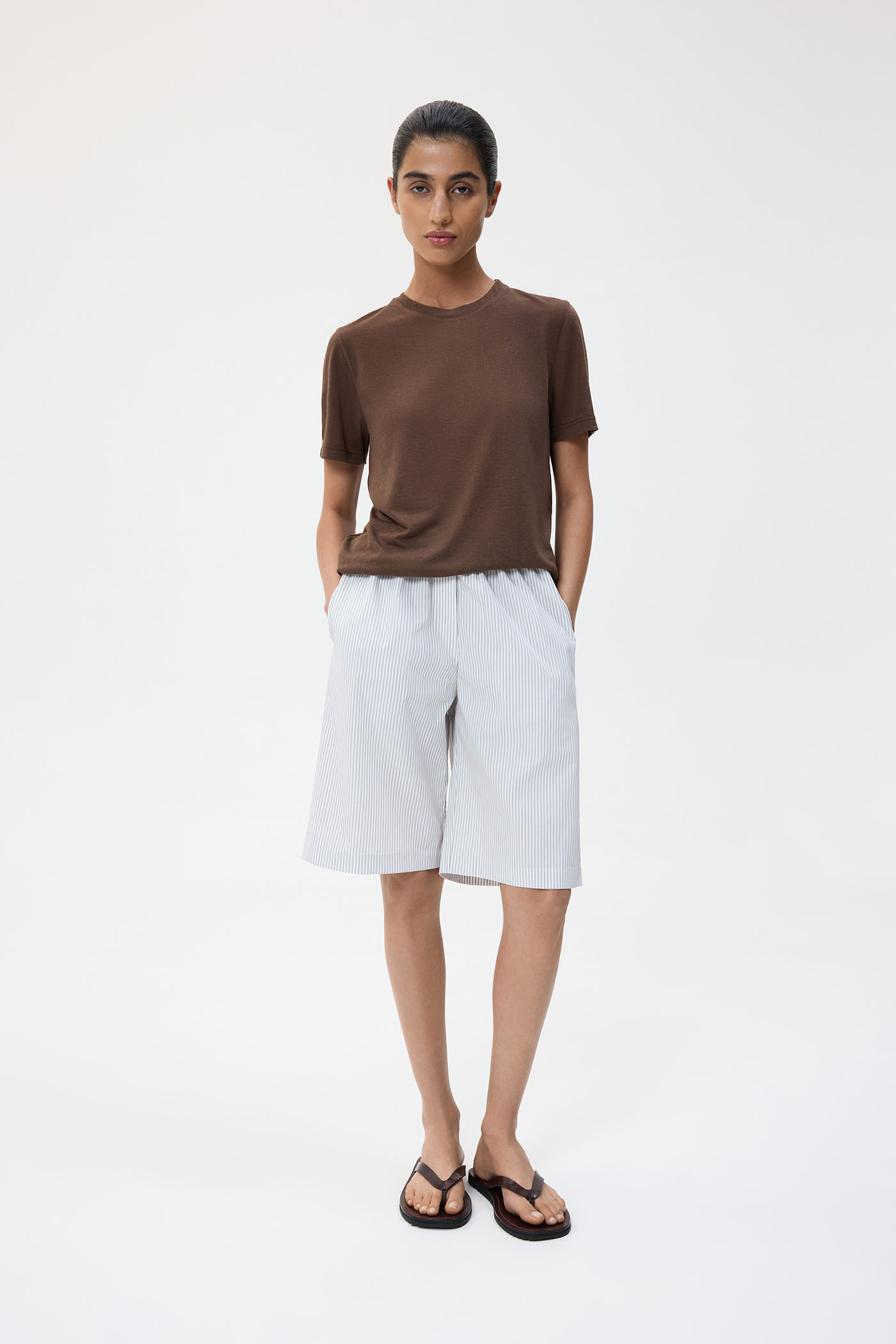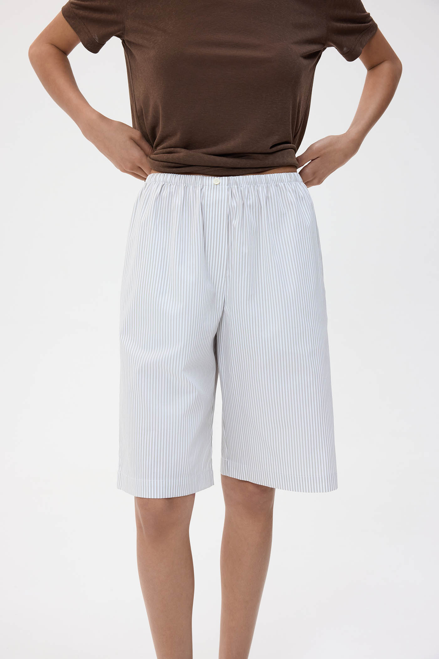 Шорты с карманами, выполненные из премиального хлопка. Свободный крой и удобная посадка обеспечивают легкость в движениях и комфорт при длительном ношении. Ткань из 100% хлопка приятна к телу и хорошо пропускает воздух, а наличие функциональных карманов и плотность материала делают модель практичным элементом летнего гардероба.