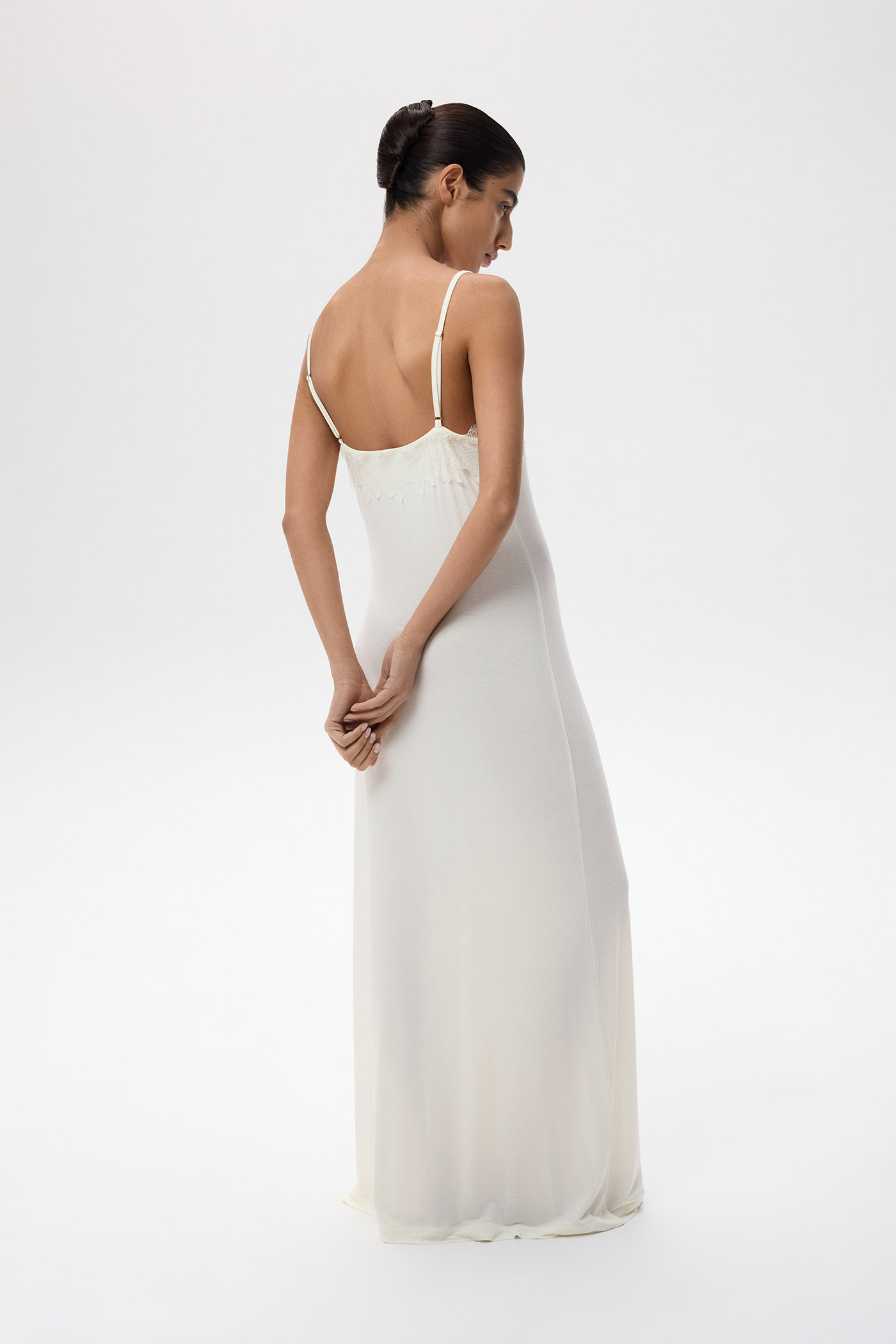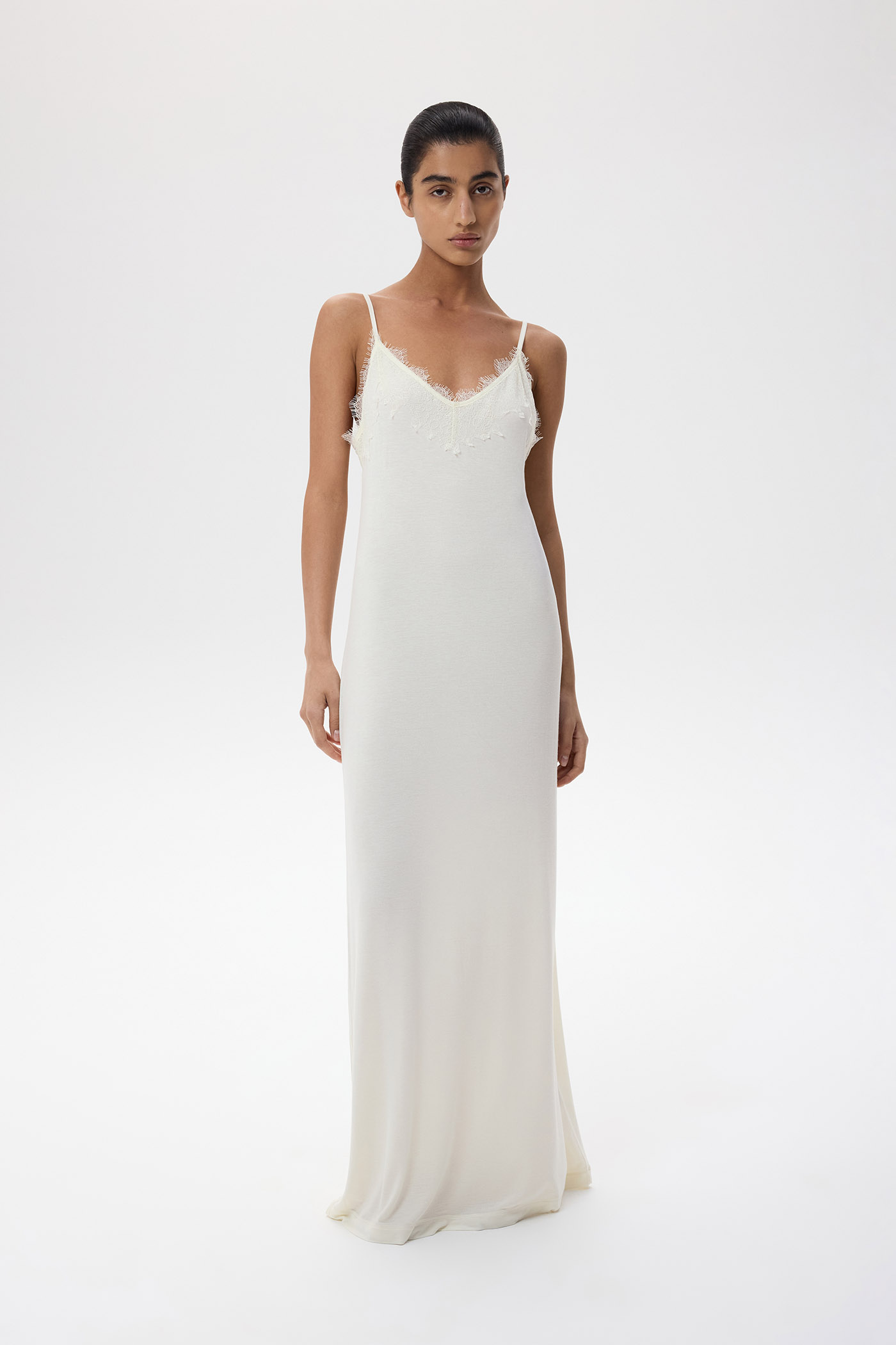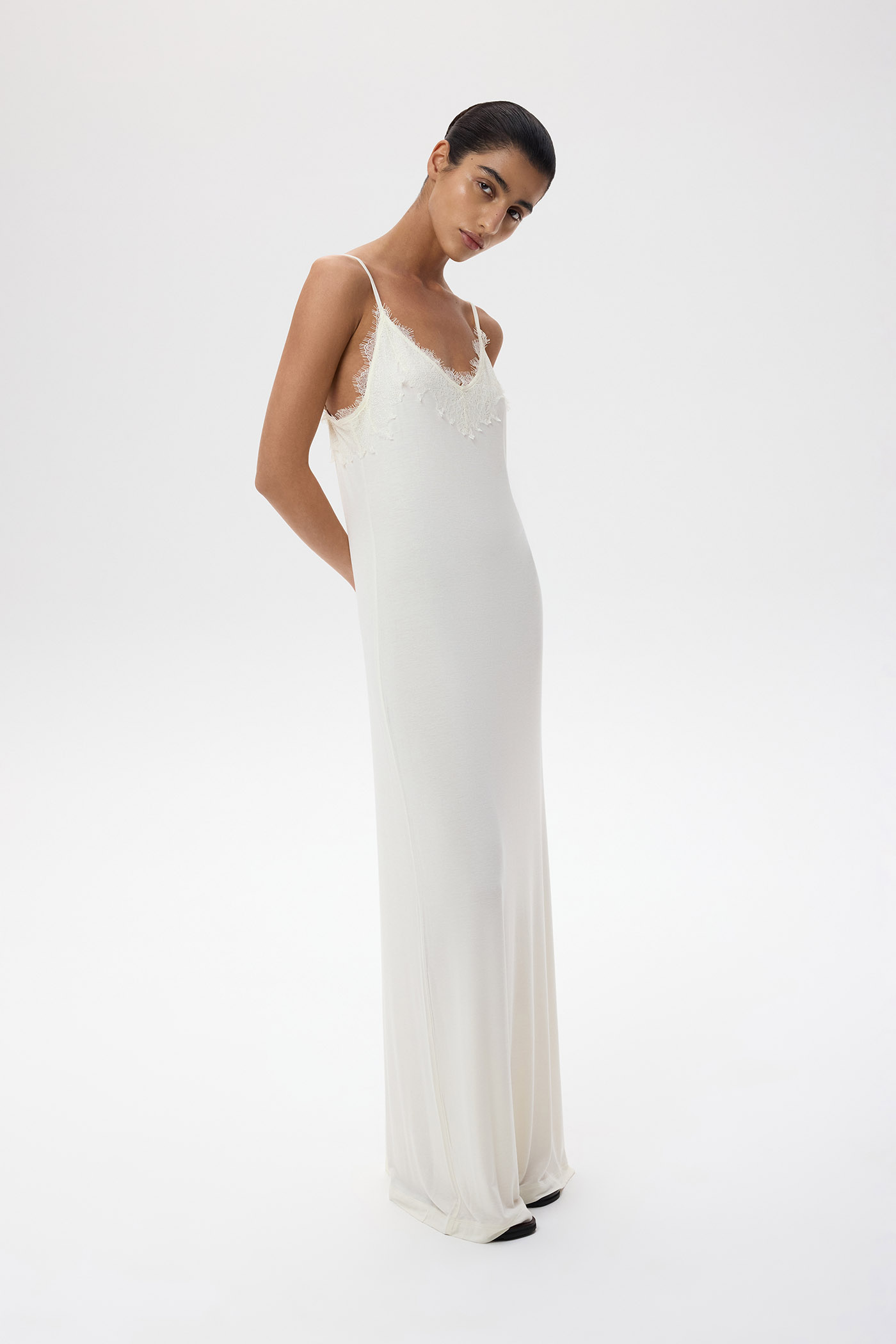 Платье из тонкого шелкового трикотажа с кружевом.