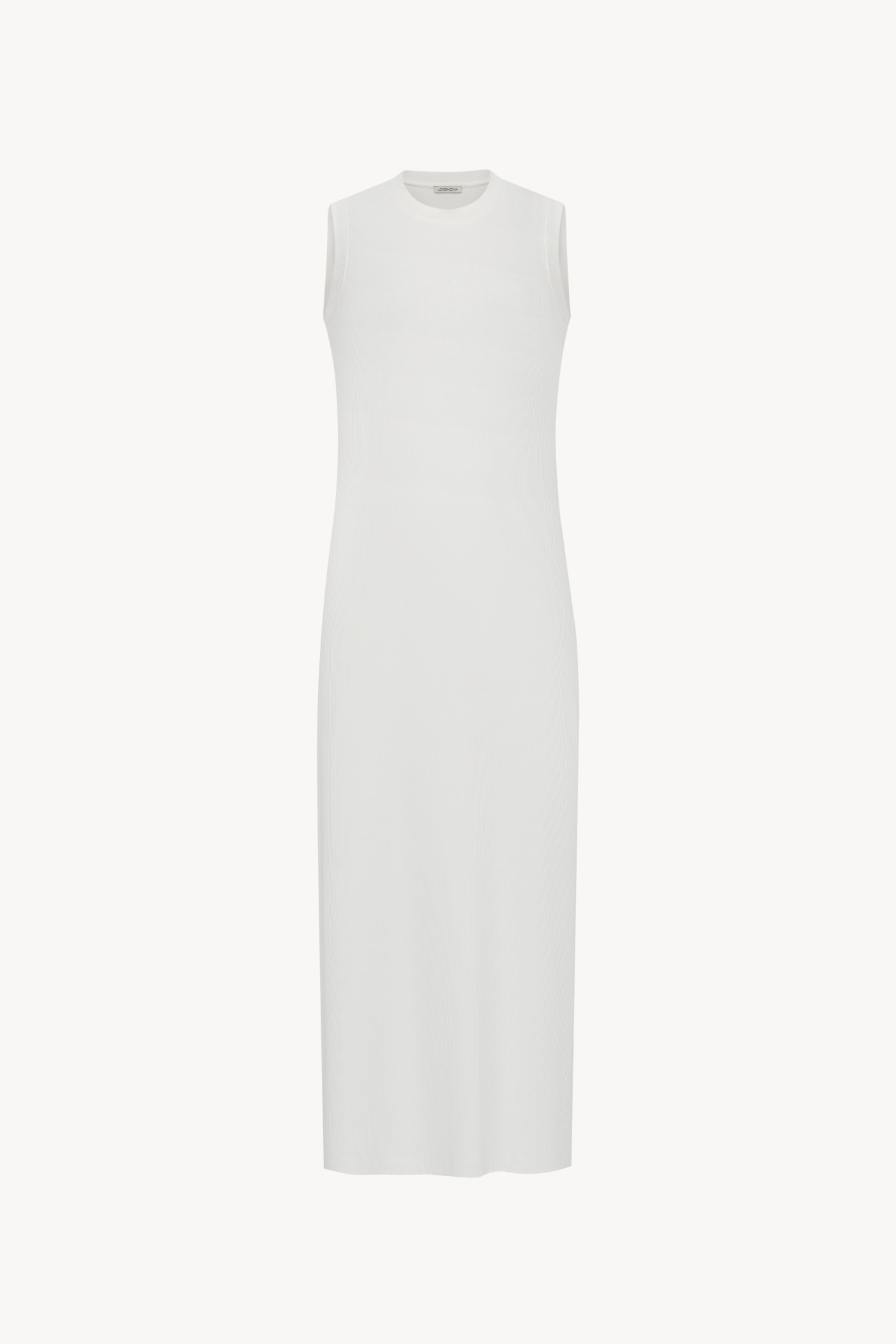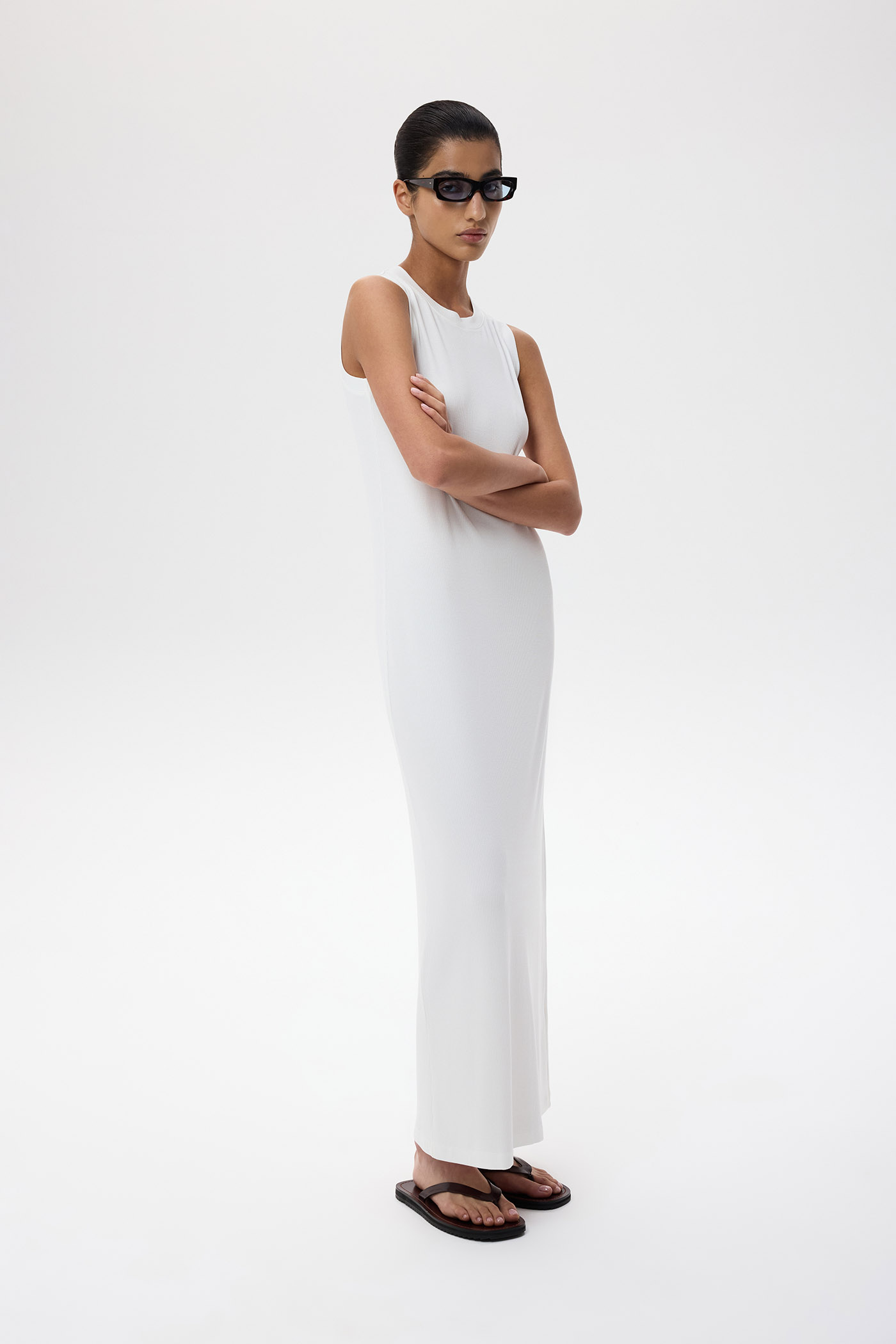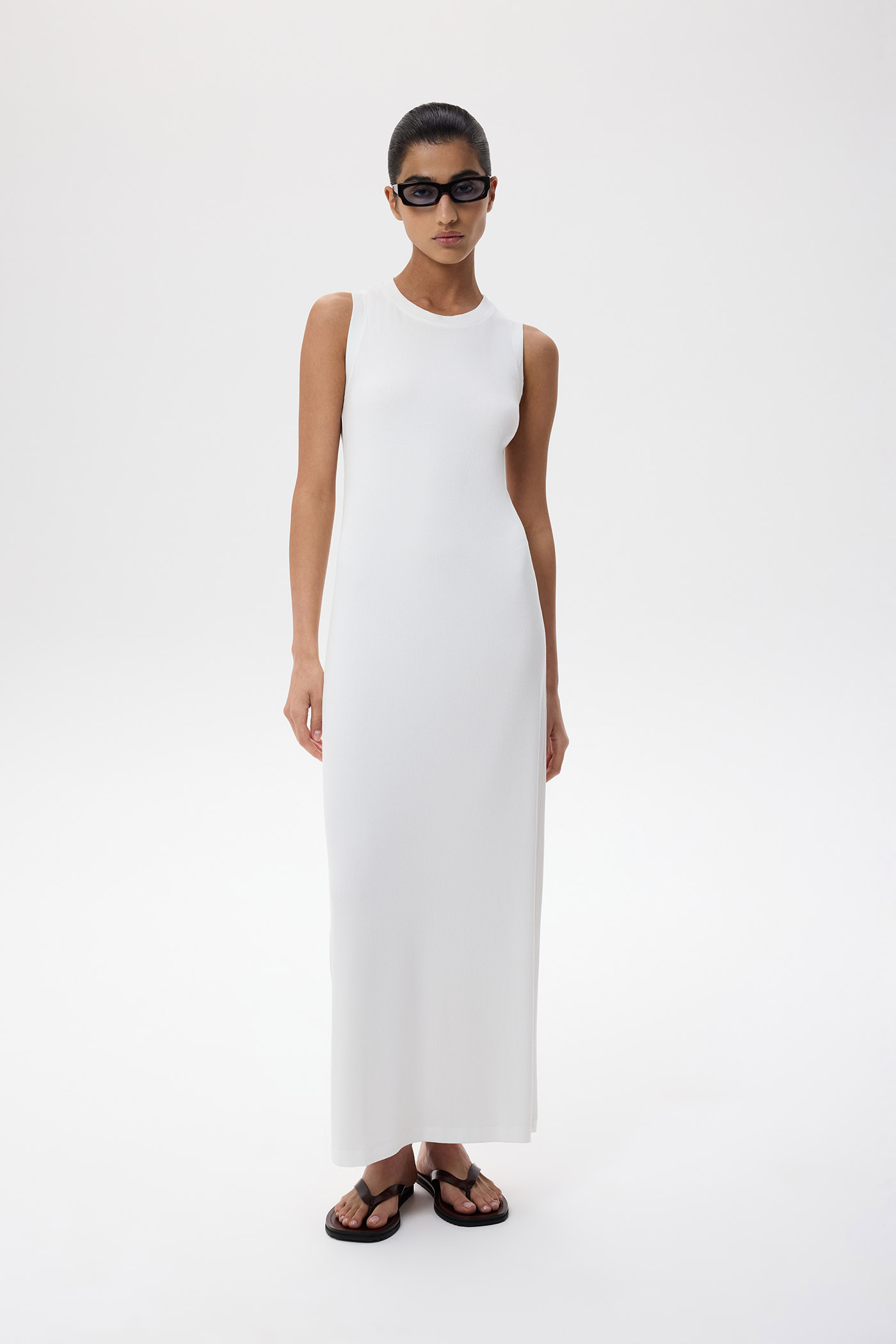 Платье прилегающего силуэта из нежного трикотажа в рубчик.