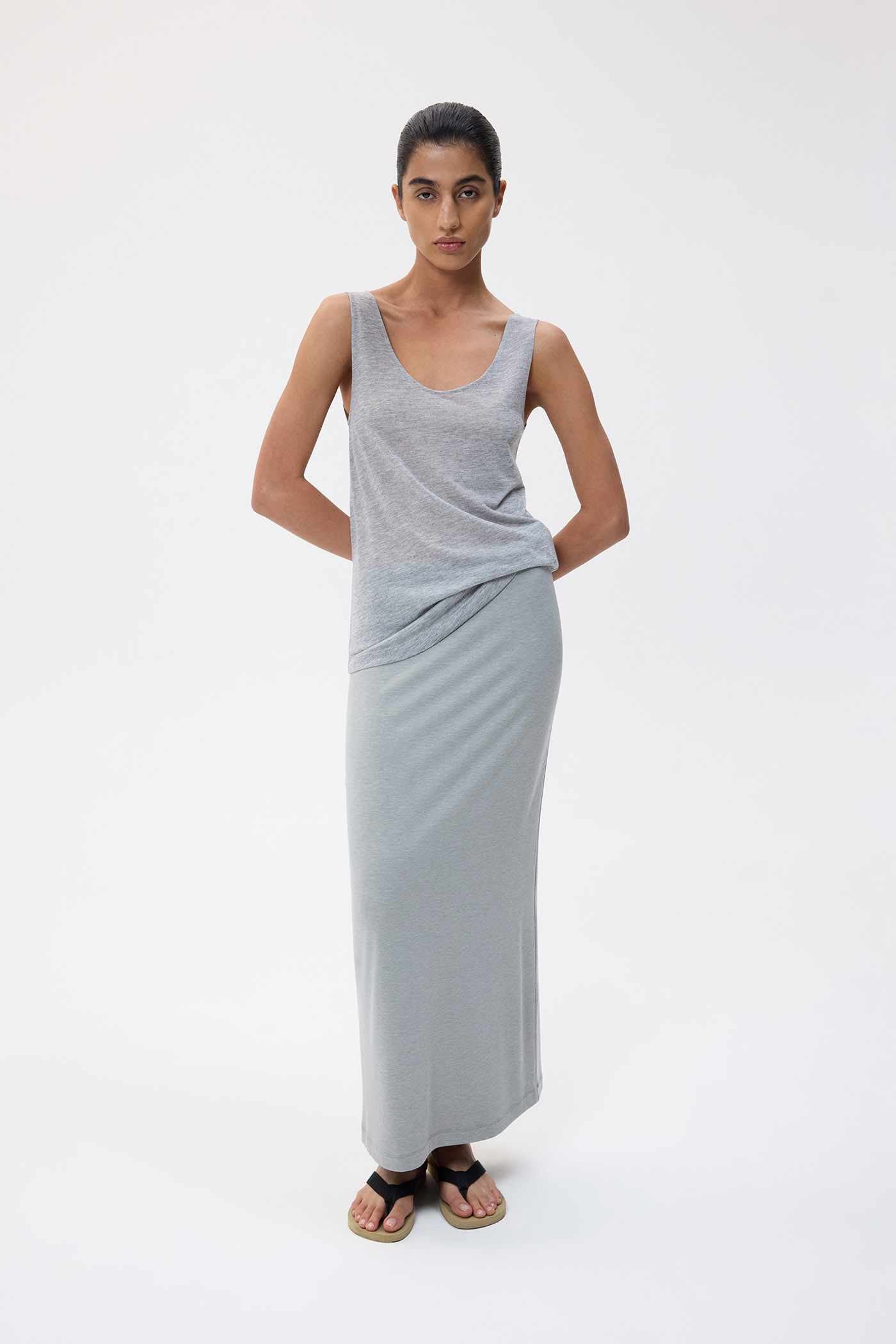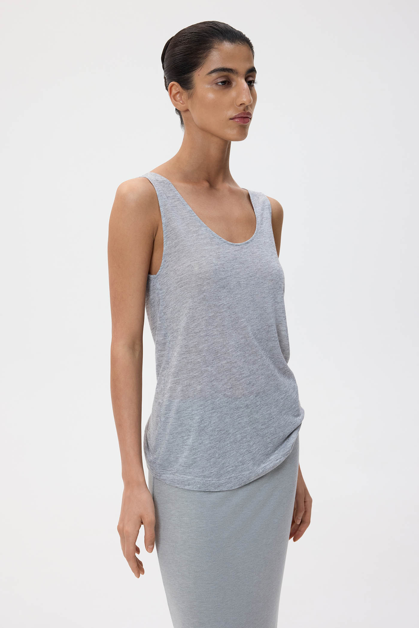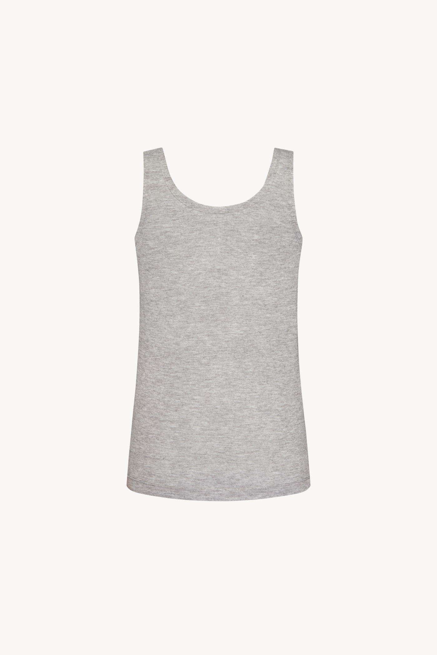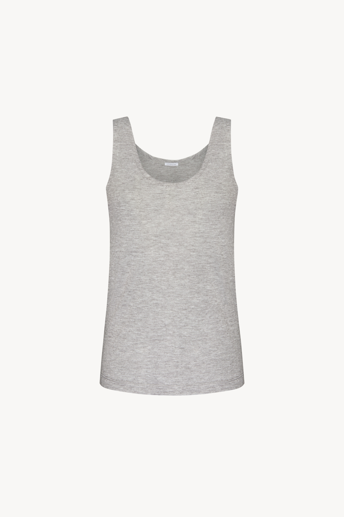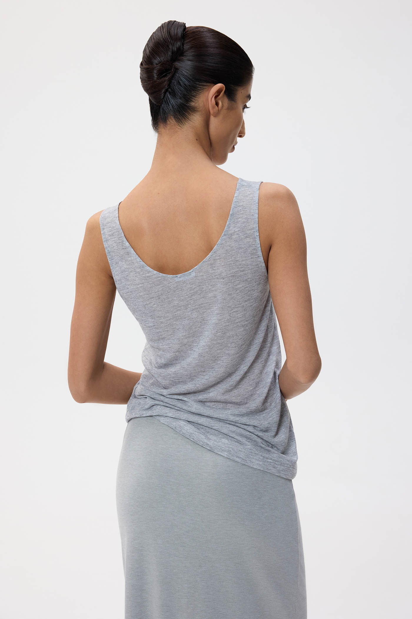 Майка свободного силуэта на широких бретелях из невесомого шелковистого трикотажа.