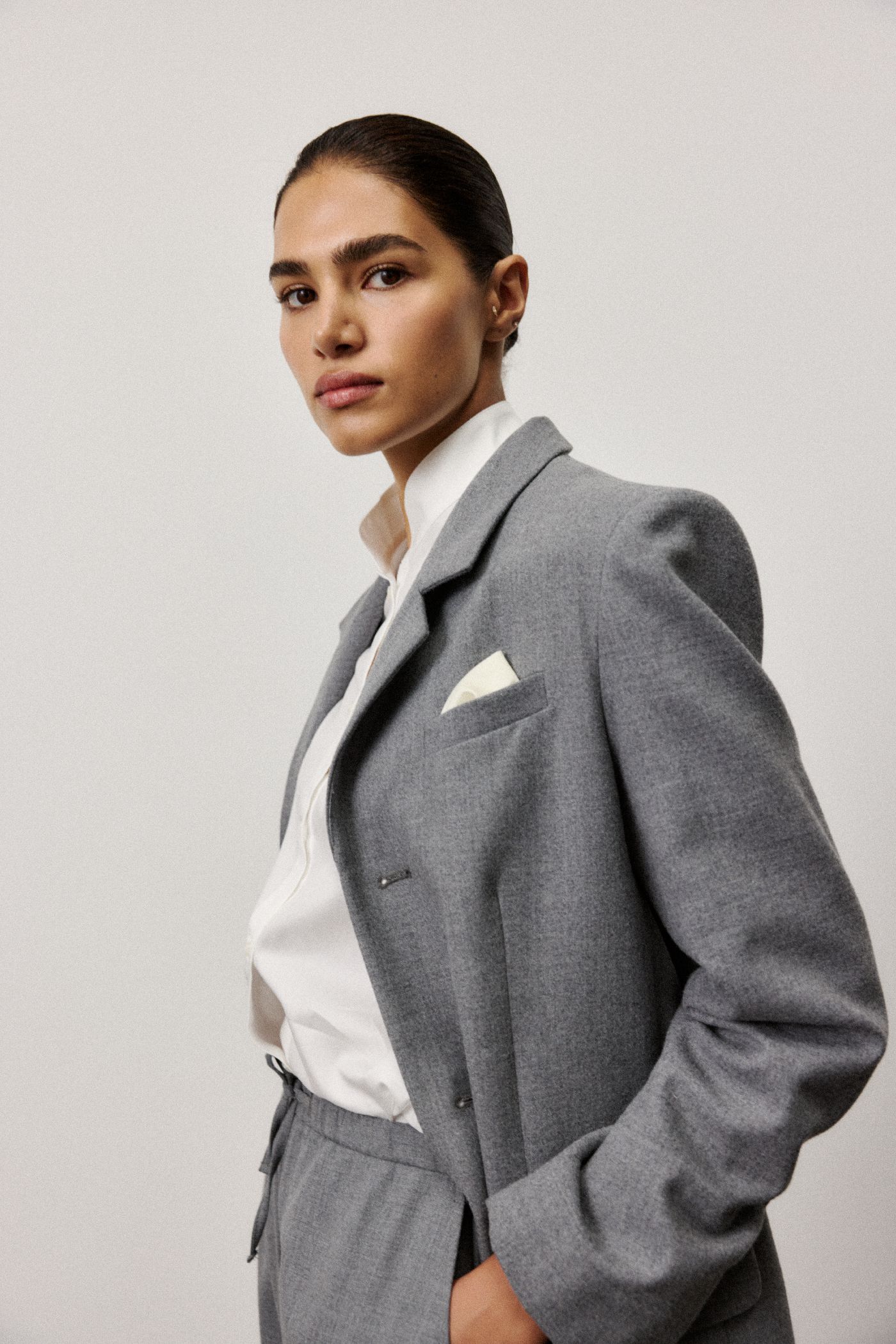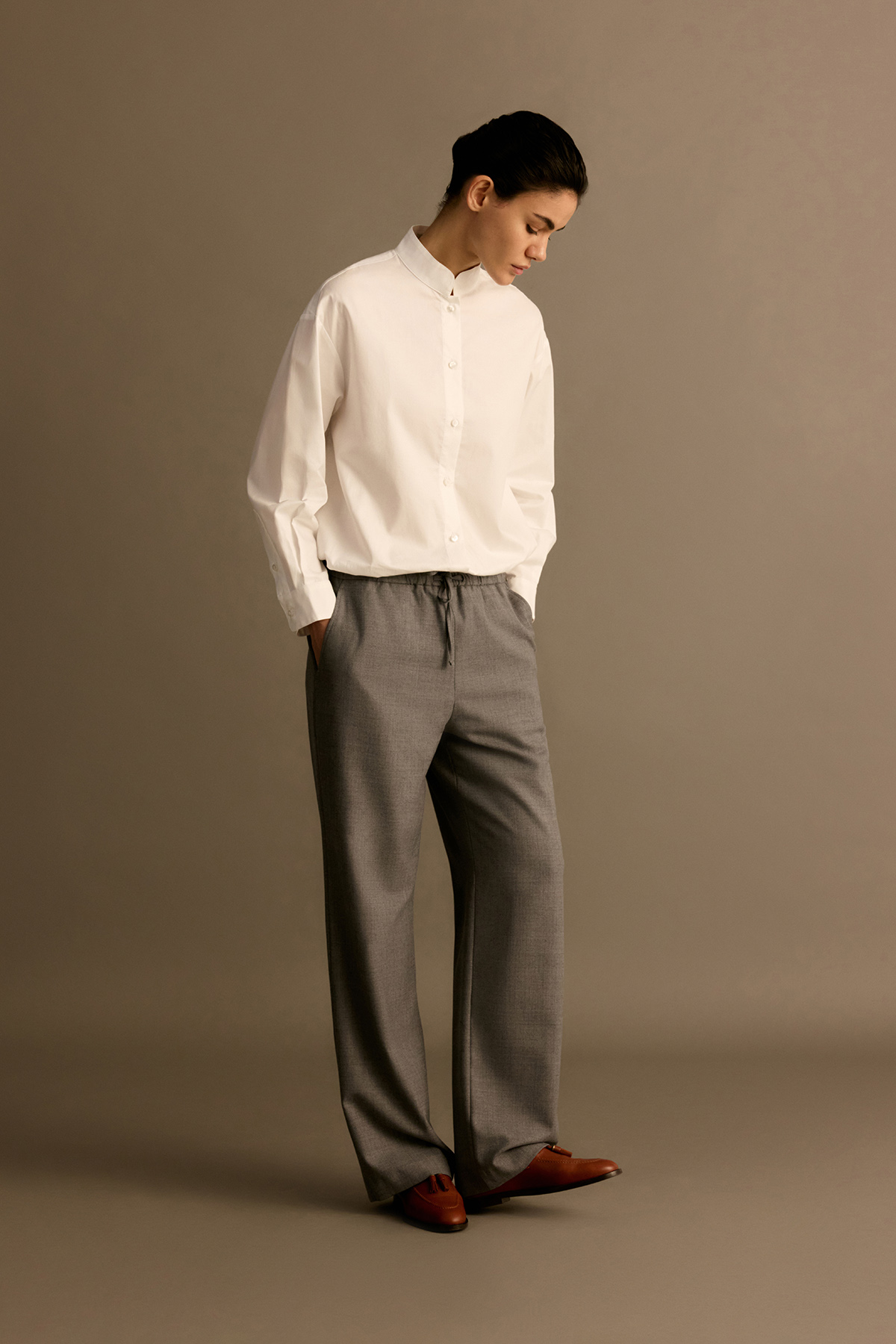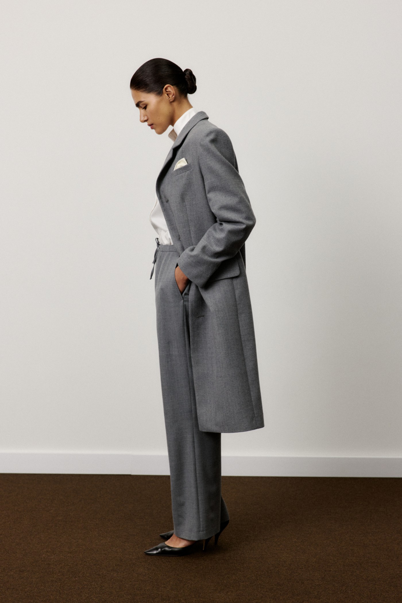 Удлиненный жакет-пальто прямого кроя на пуговицах из шерсти.