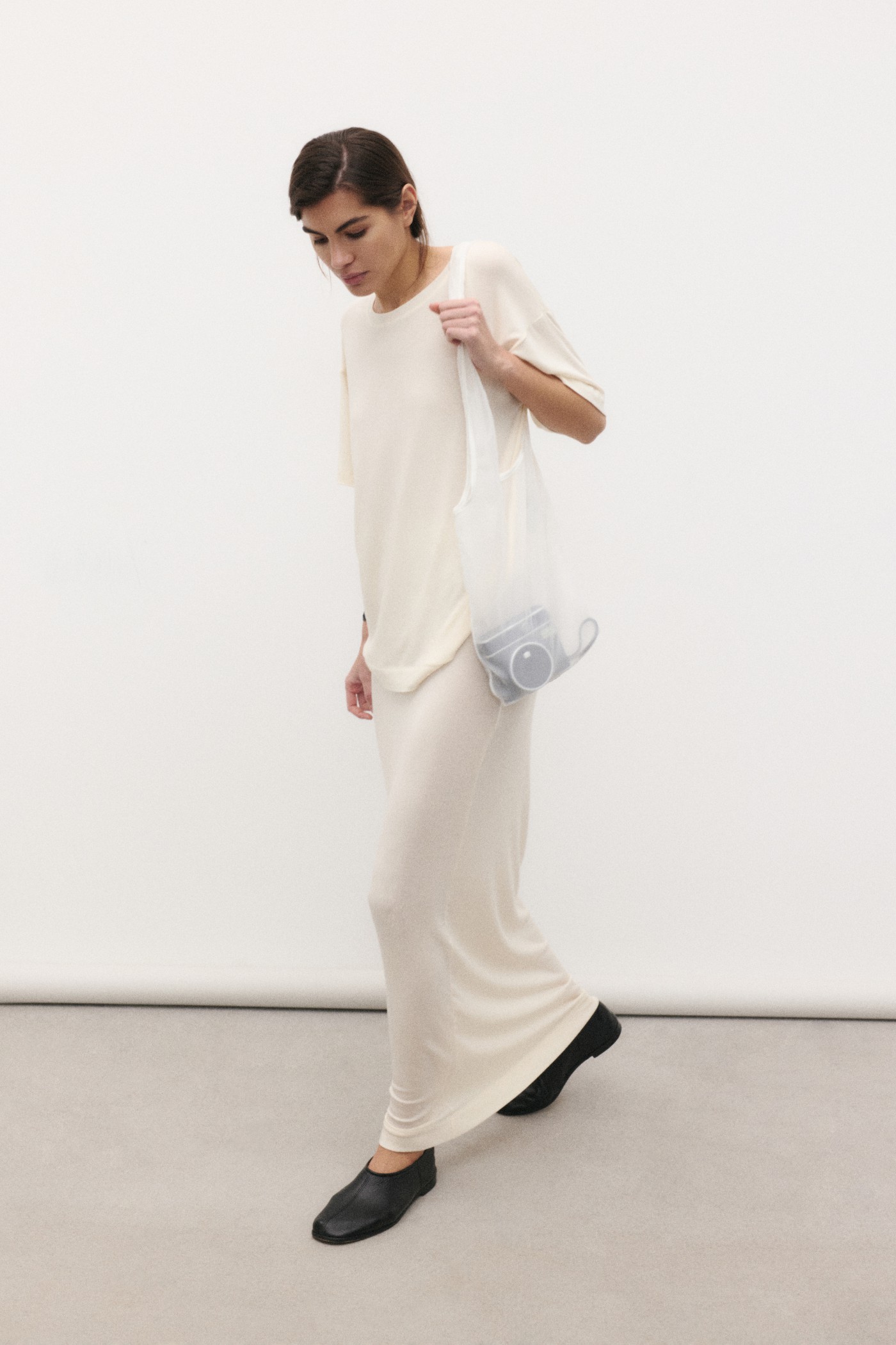 Юбка длины макси из невесомого шелковистого трикотажа.