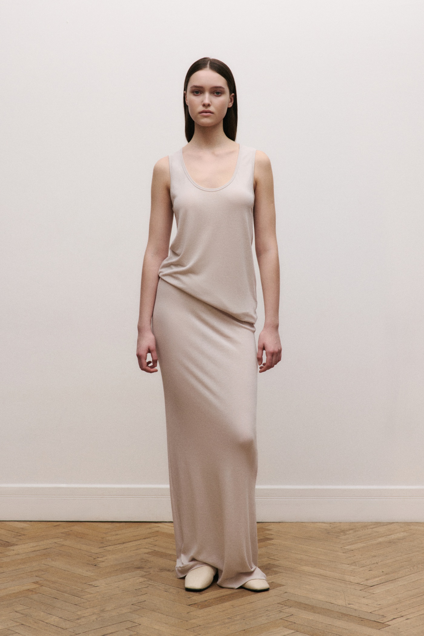 Юбка длины макси из невесомого шелковистого трикотажа.